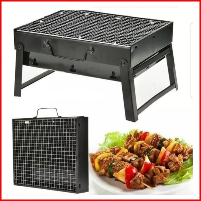 Lipat Panggangan Portable Grill Hitam Lipat Pemanggang Set Serbaguna