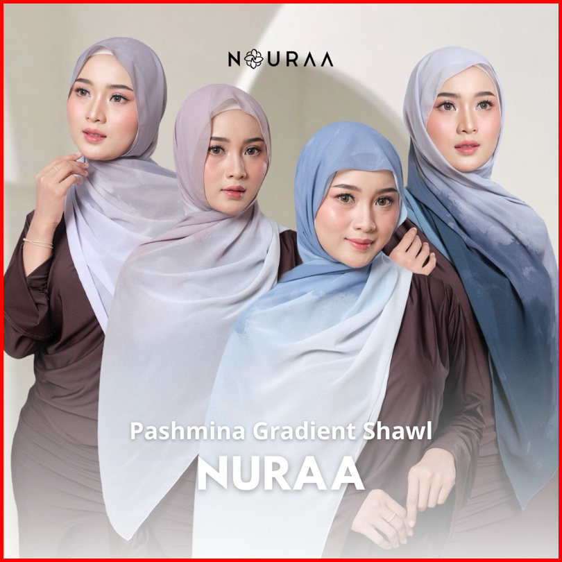 Nouraa Scraft - Nuraa Shawl - Pashmina Gradient - Pashmina Ombre - Pashmina Chiffon Ceruty Babydoll - Pashmina Three Ton