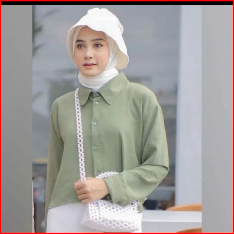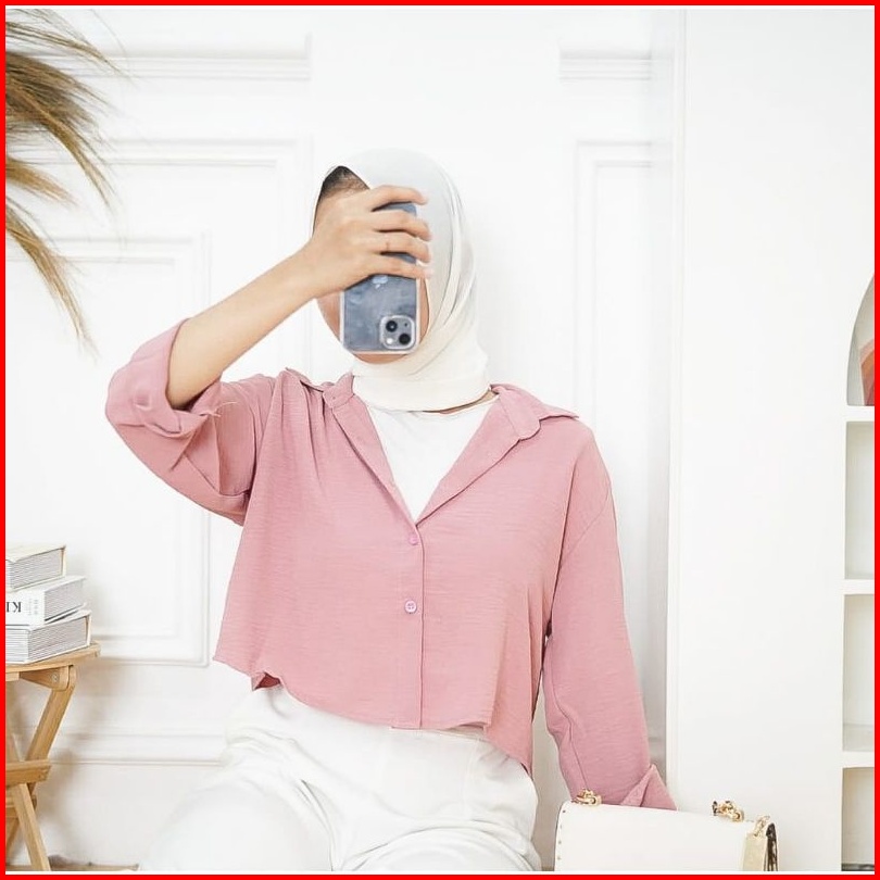 Kemeja Crop Kekinian Kain Crincle Airflow