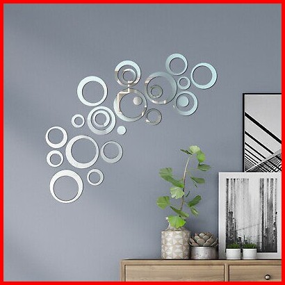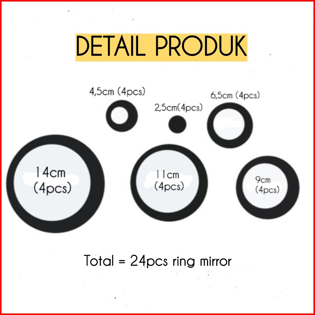24pcs Set Ring Mirror Sticker Kaca Bulat Dekorasi Dinding Wall Sticker Sticker Mirror Circle Round