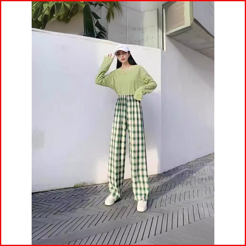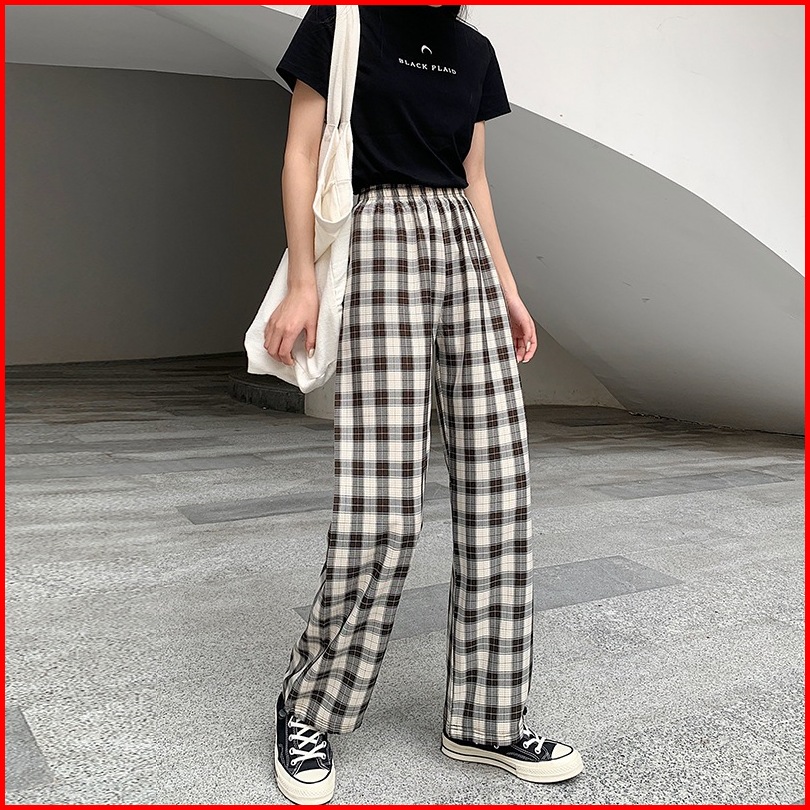Gs Cpg280 Celana Panjang Kasual Motif Kotak-kotak Kekinian Celana Panjang Tartan Korean Fashion Style