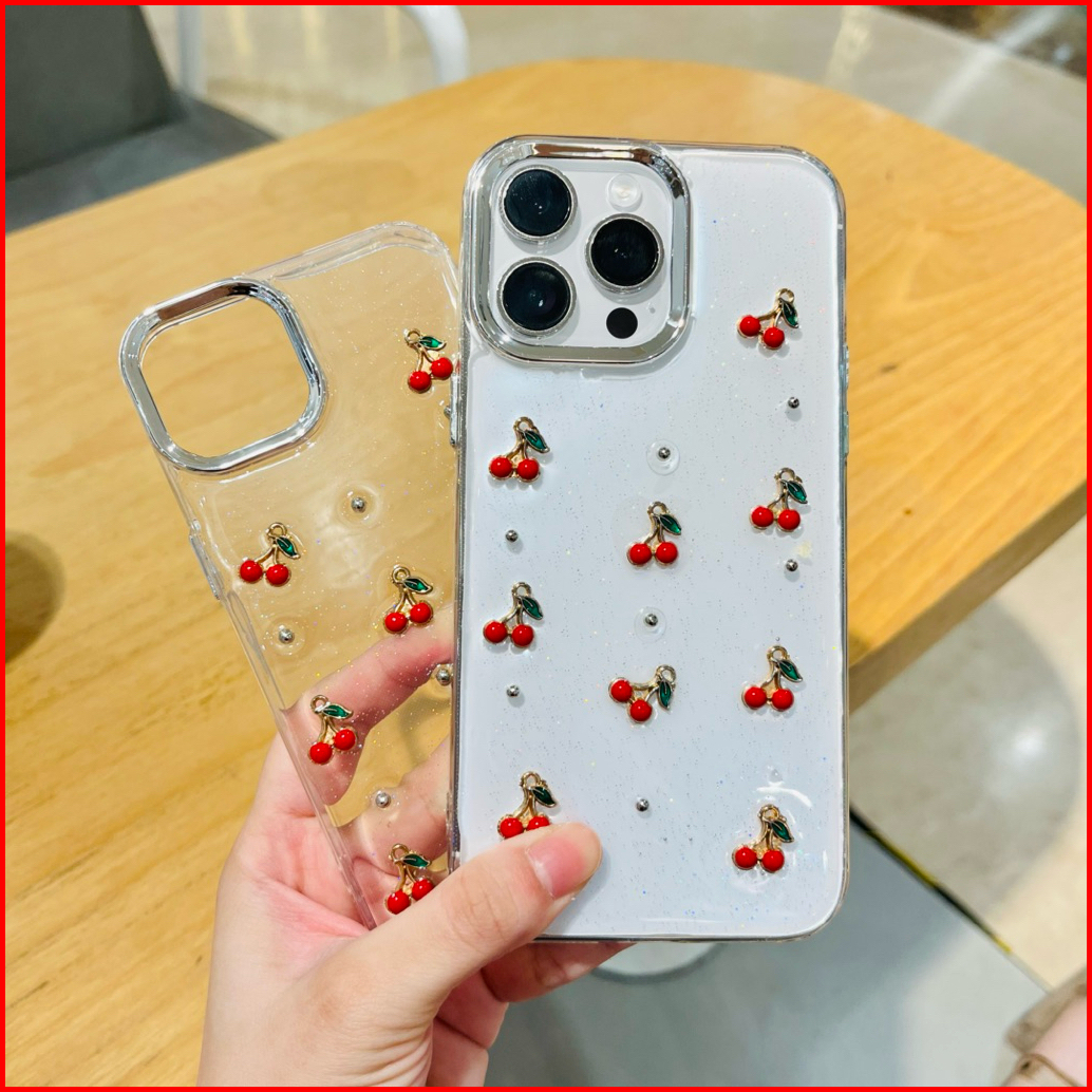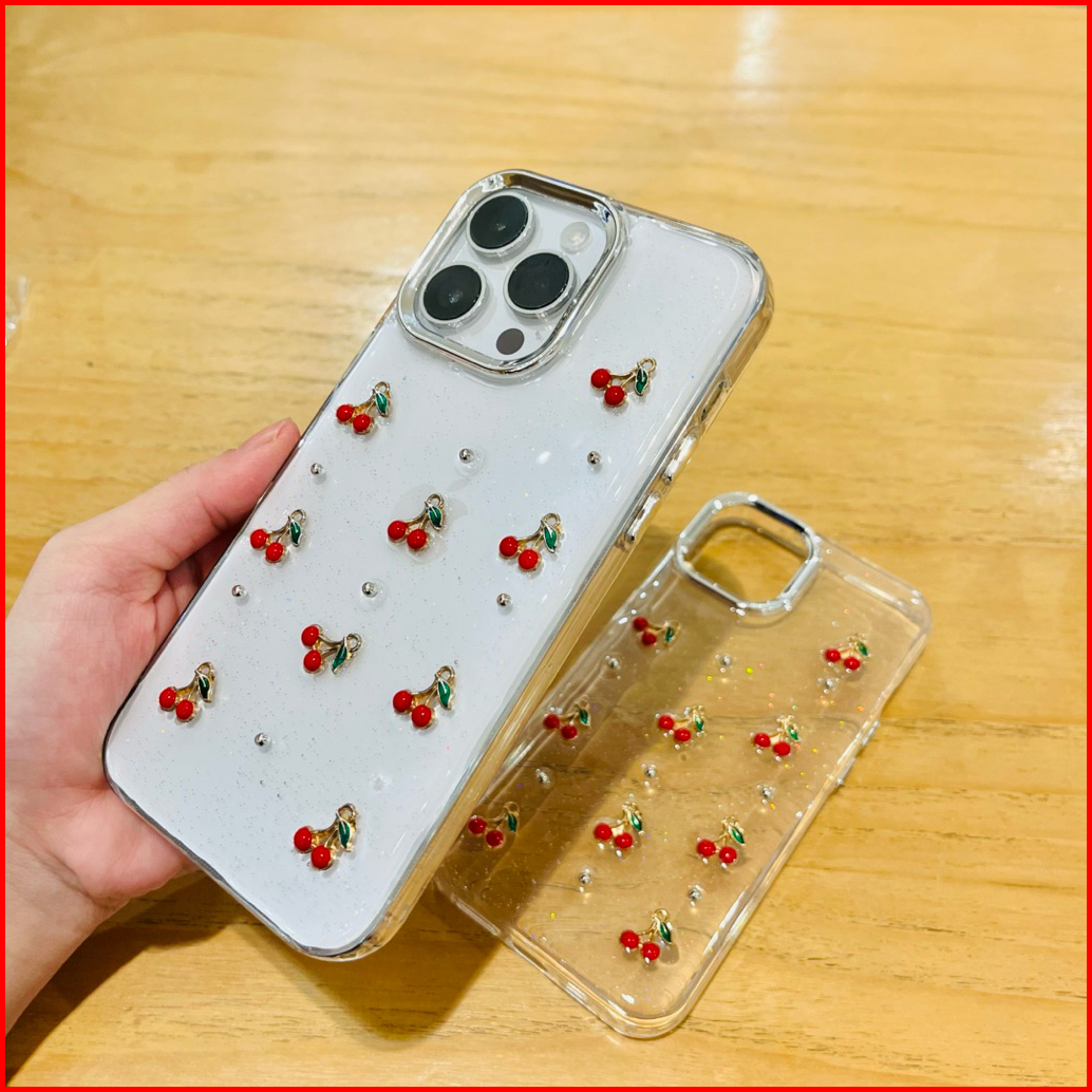 Cherry Clear Glitter Case 3d For Ip 11 12 13 14 15 16 Pro Max 14 15 16 Plus Hard Case Sillicone Premium