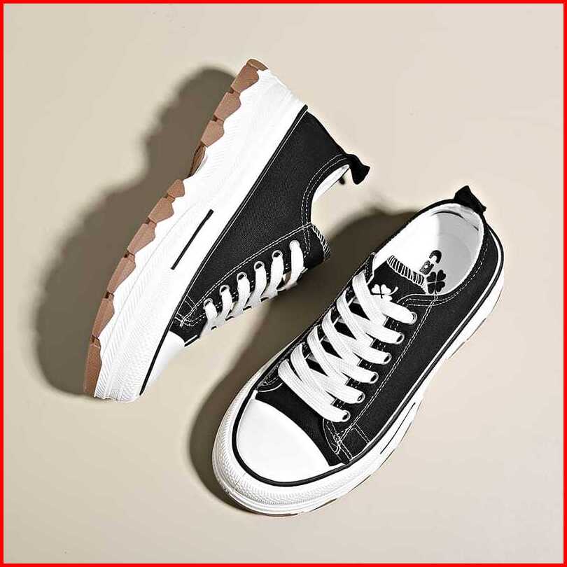 Sepatu Sneakers Kanvas Wanita Korea Size 37-40 Hitam Dan Putih