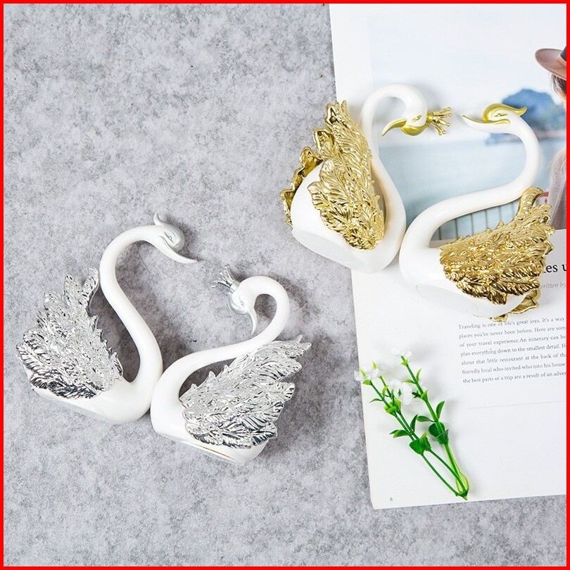 Sepasang Angsa Gold, Sepasang Angsa Silve, Tegak Lurus, Kaki Angkat, Kepala Tunduk, 22CM Menara Paris, 18CM Menara Paris, Salju, rusa, dedaunan
