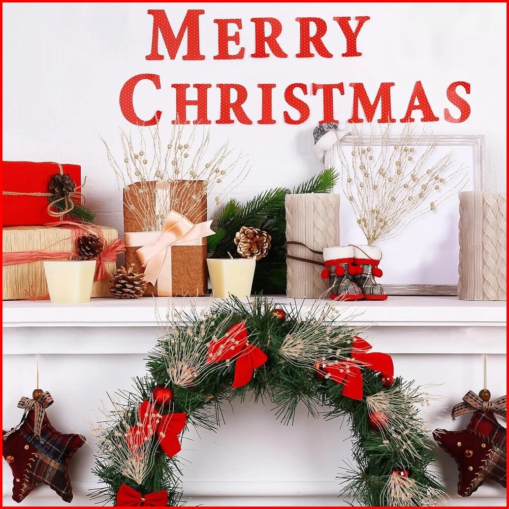 4pcs Set Biji Berries Merah Berkilau Buatan Batang Dan Cabang Berkilau Hiasan Pohon Natal Dekorasi Pesta Dekorasi Rumah