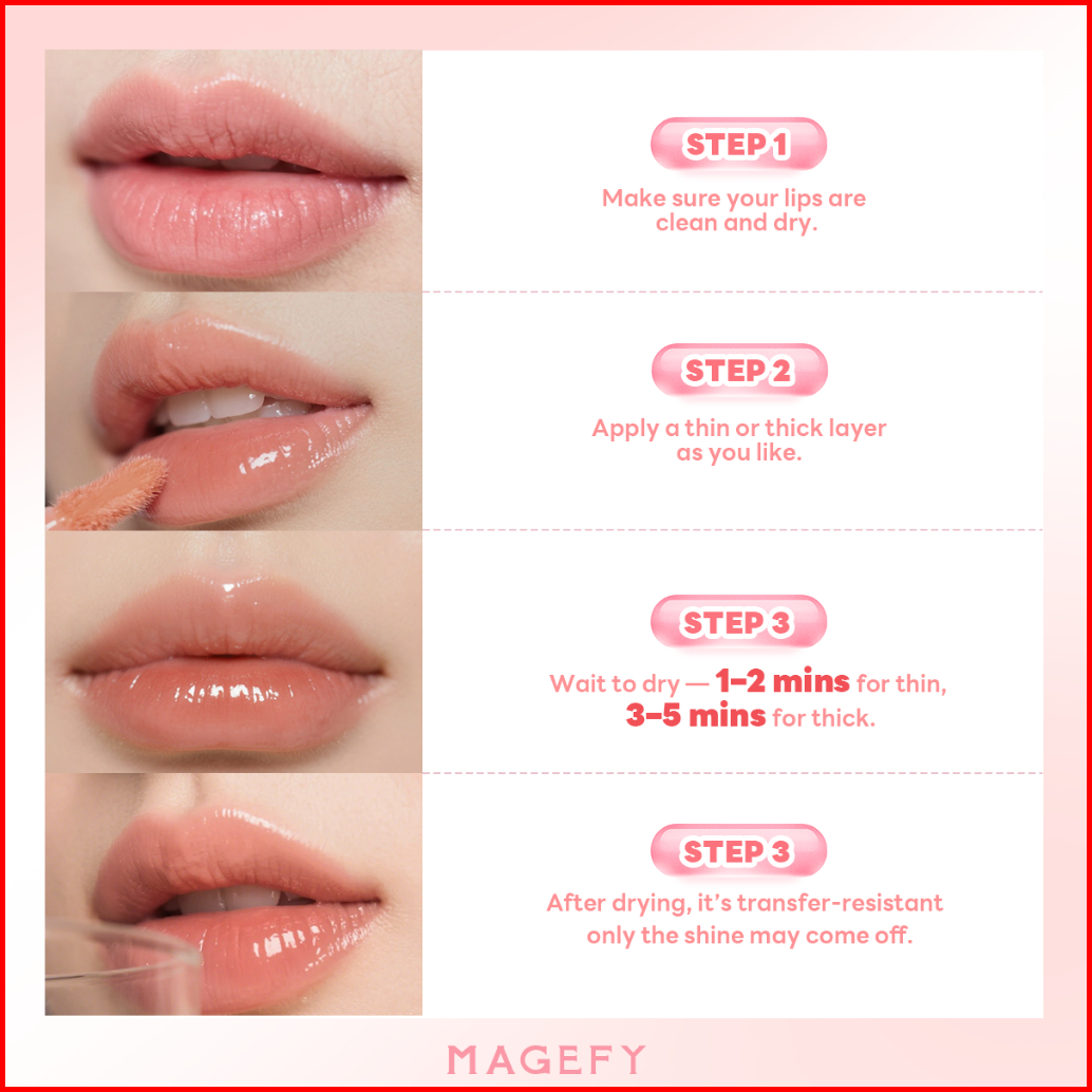 Magefy Lip Gloss Kilau Transparan Tahan Lama Tidak Luntur Ringan Melembapkan Tidak Lengket Di Bibir Mf-l02