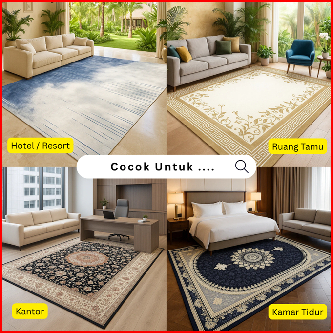 Karpet Lantai Motif Aesthetic Jumbo 200x270 Ruang Tamu Keluarga Kamar Tidur Anti Slip Polyester