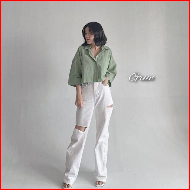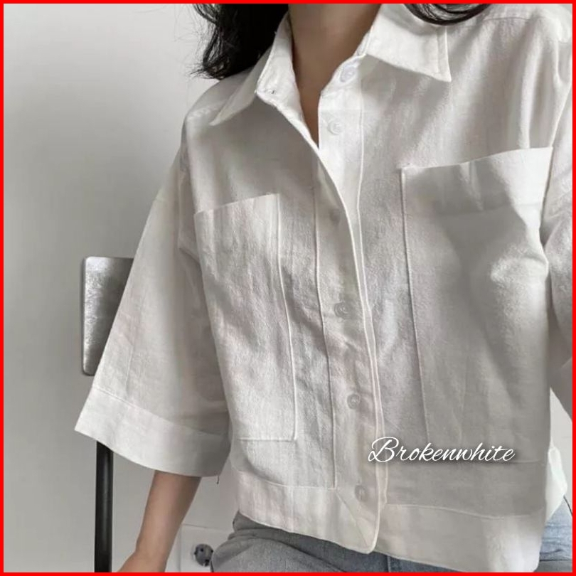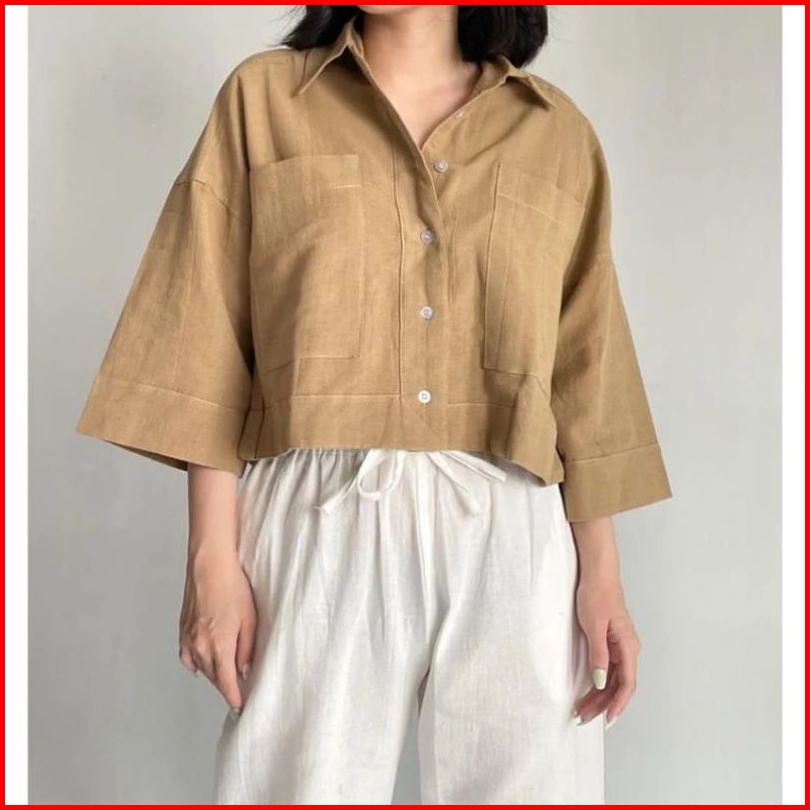 Kemeja Linen Wanita -crop Top Shirt - Quter Linen - Atasan Wanita