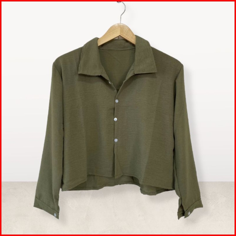 Hanin Crop Kemeja Crop Ploi Belakang Kemeja Crinkle Wanita