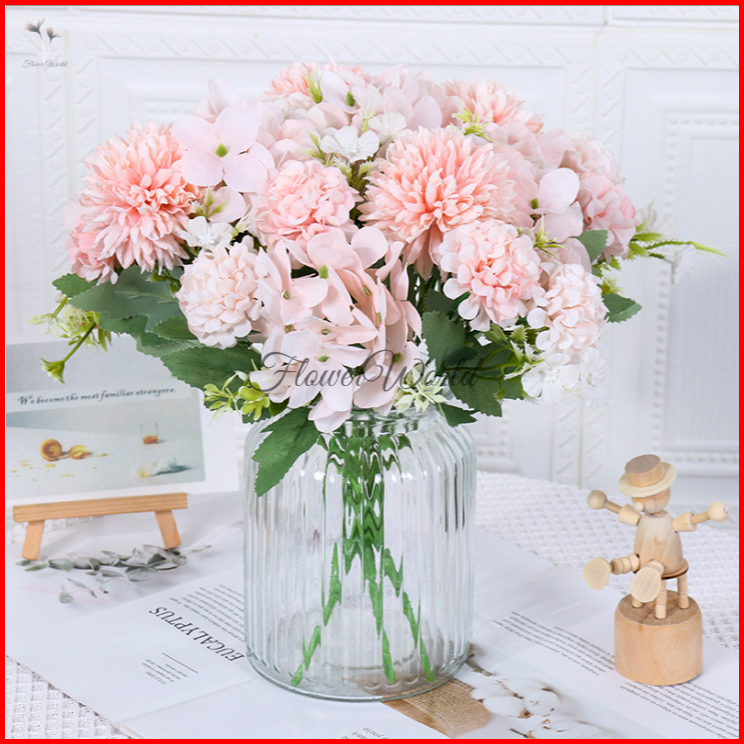 Flowerworld Artificial Bunga Hydrangea Mix Bunga Tangkai Plastik Bunga Rose Hias Bunga Bucket Isi 5 Tangkai Bunga Anthur