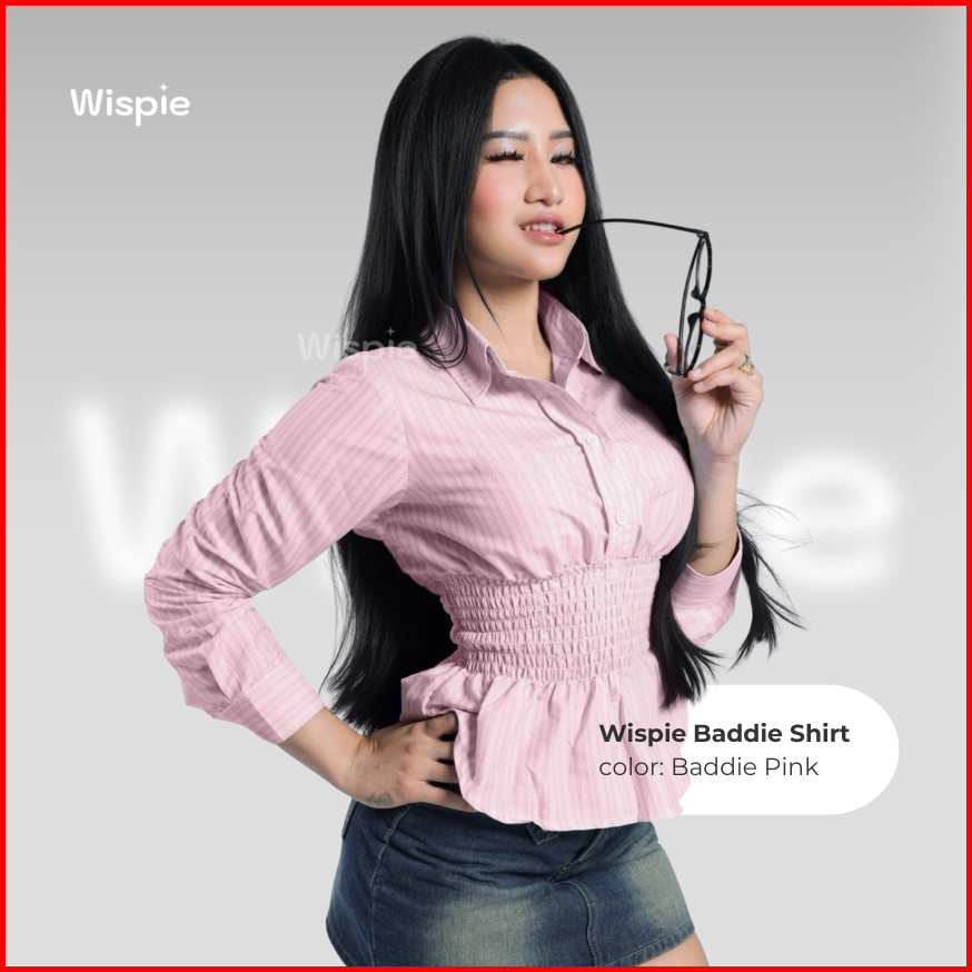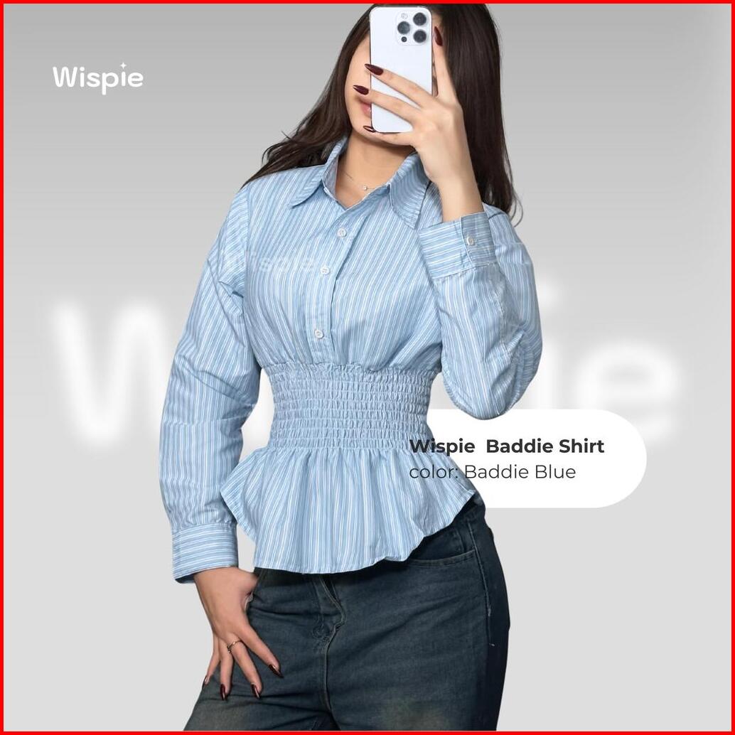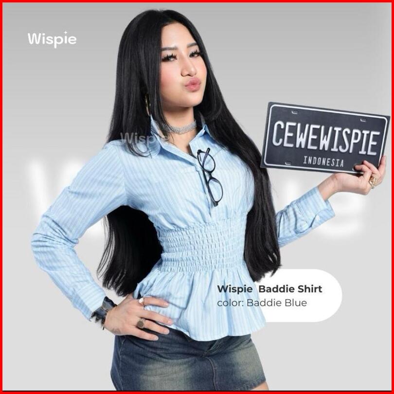 Wispie Baddie Shirt Kemeja Fitted Blouse Stripe Wanita Garis