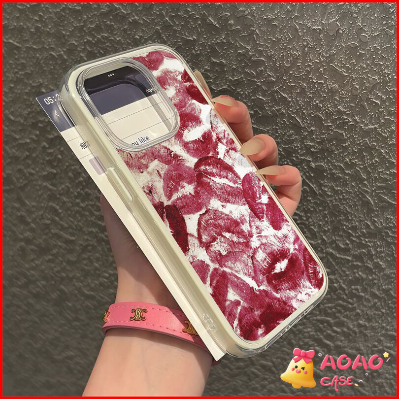 Case Hp Untuk Iphone 11 16 14 12 15 13 Pro Max 15 16 14 Plus Bibir Merah Manis Romantis Mewah 2 In 1 Silikon Soft Cover