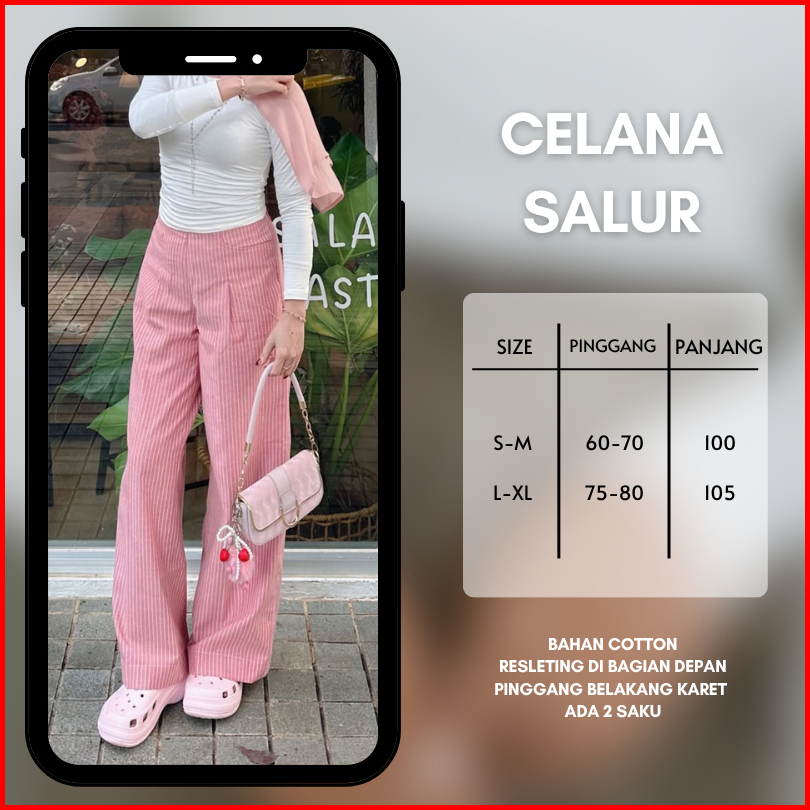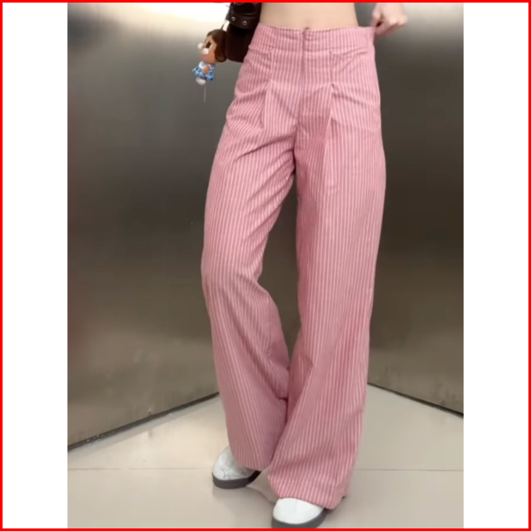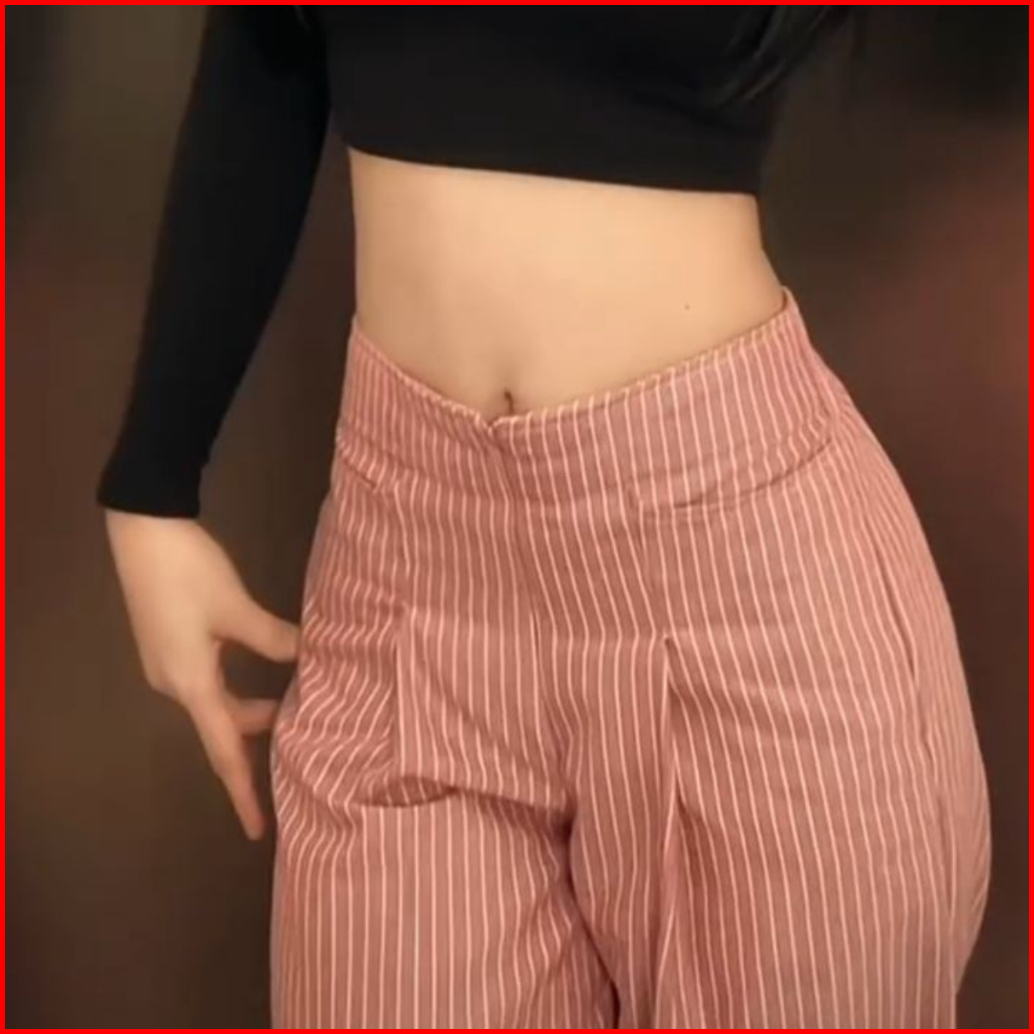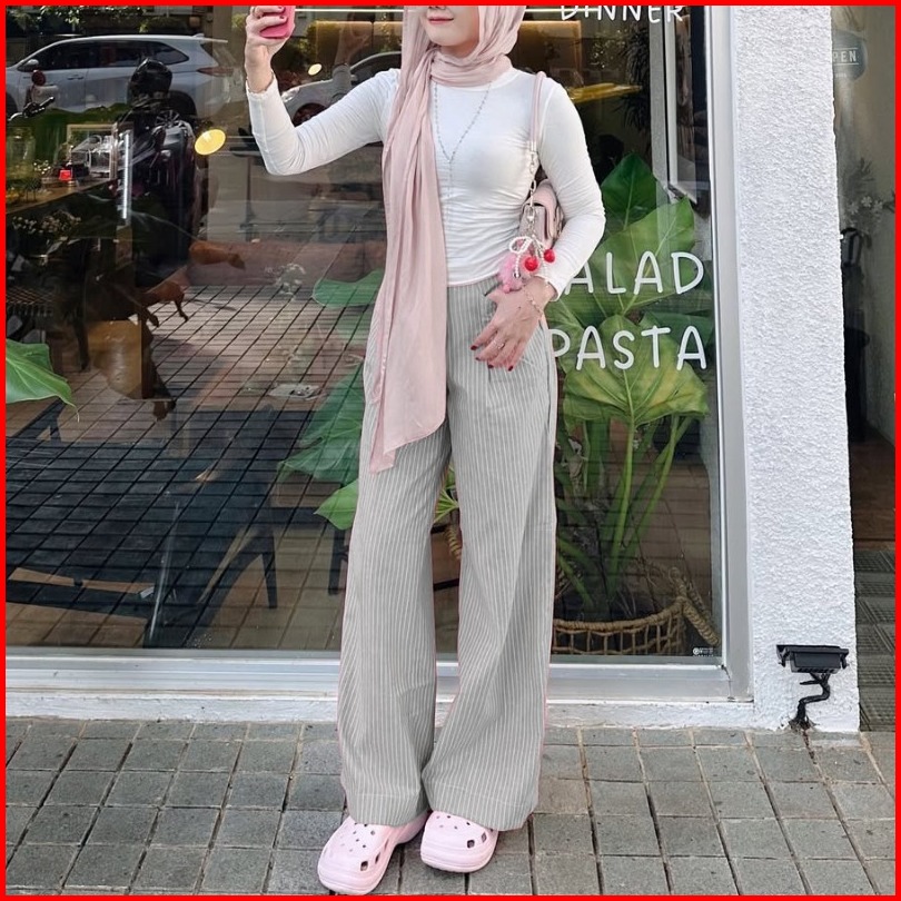 Outfitted Celana Panjang Wanita Kekinian Korean Style Kulot Motif Garis Kantor Kuliah Stripe Pants