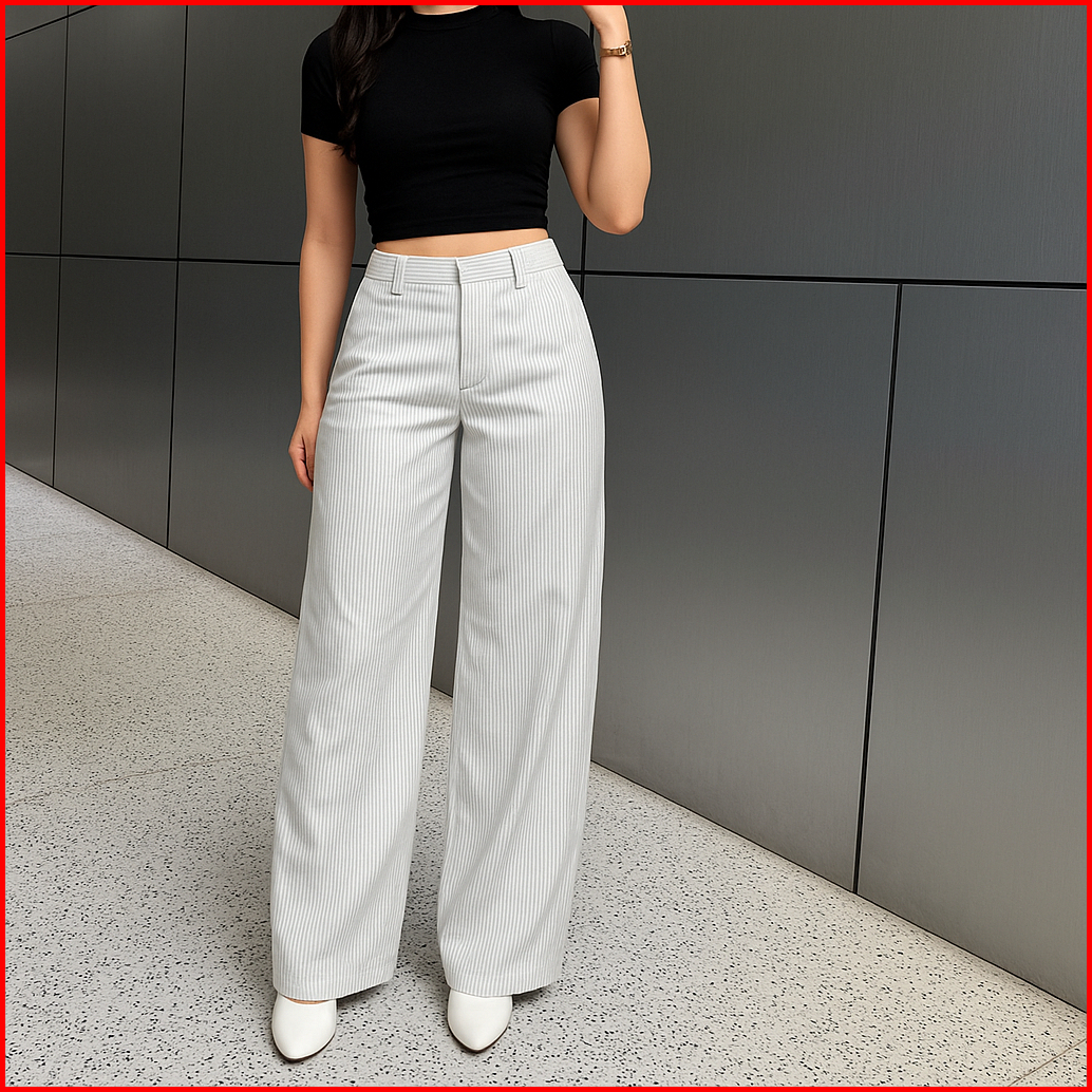 Amnesia- City Pants Pink Celana Kulot Wanita Wide Leg Celana Tidur Panjang Wanita Kantor Kuliah Garis Pinstripe