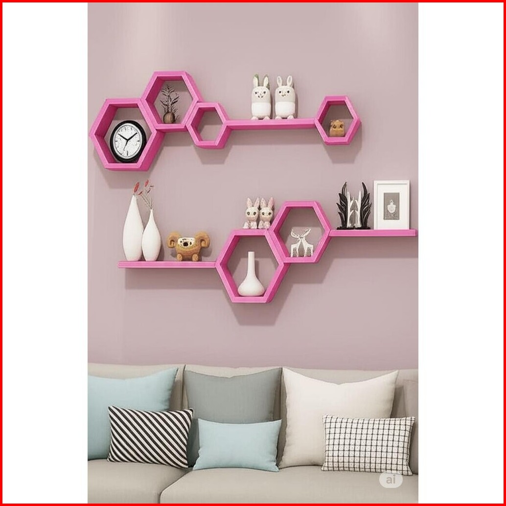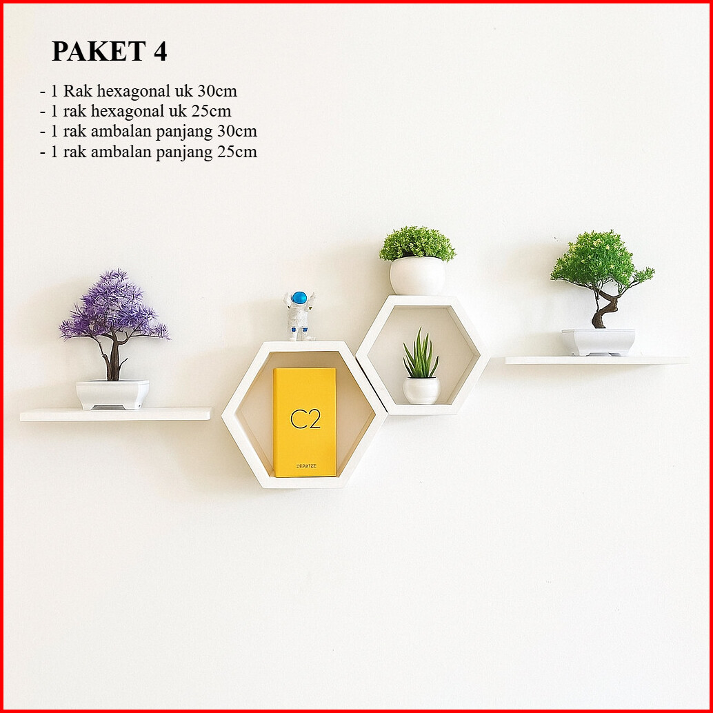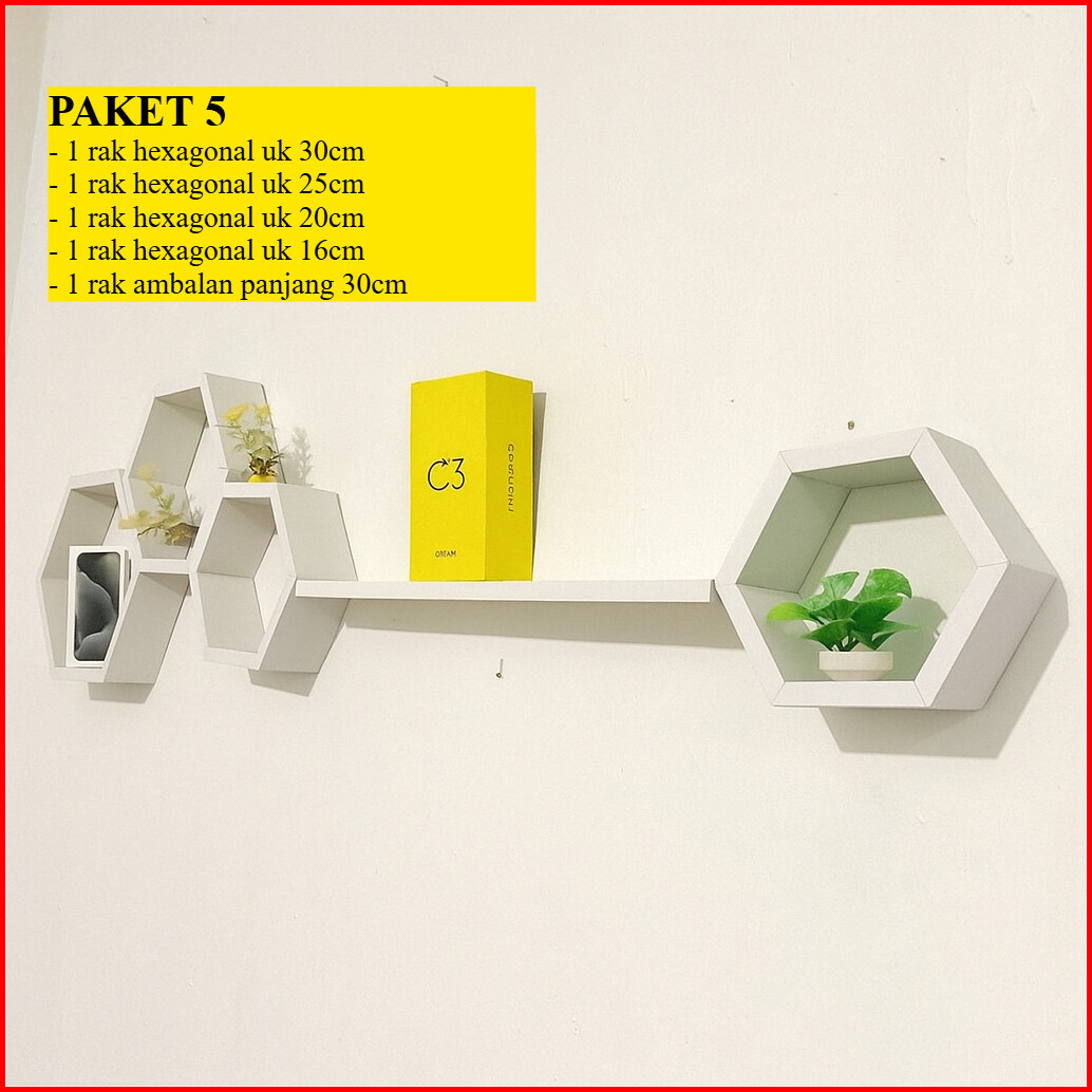 Rak Hexagonal Dinding Hexagonal 1set Ambalan Hiasan Dinding Rak Hexagonal Estetik Kayu Pajangan Kayu