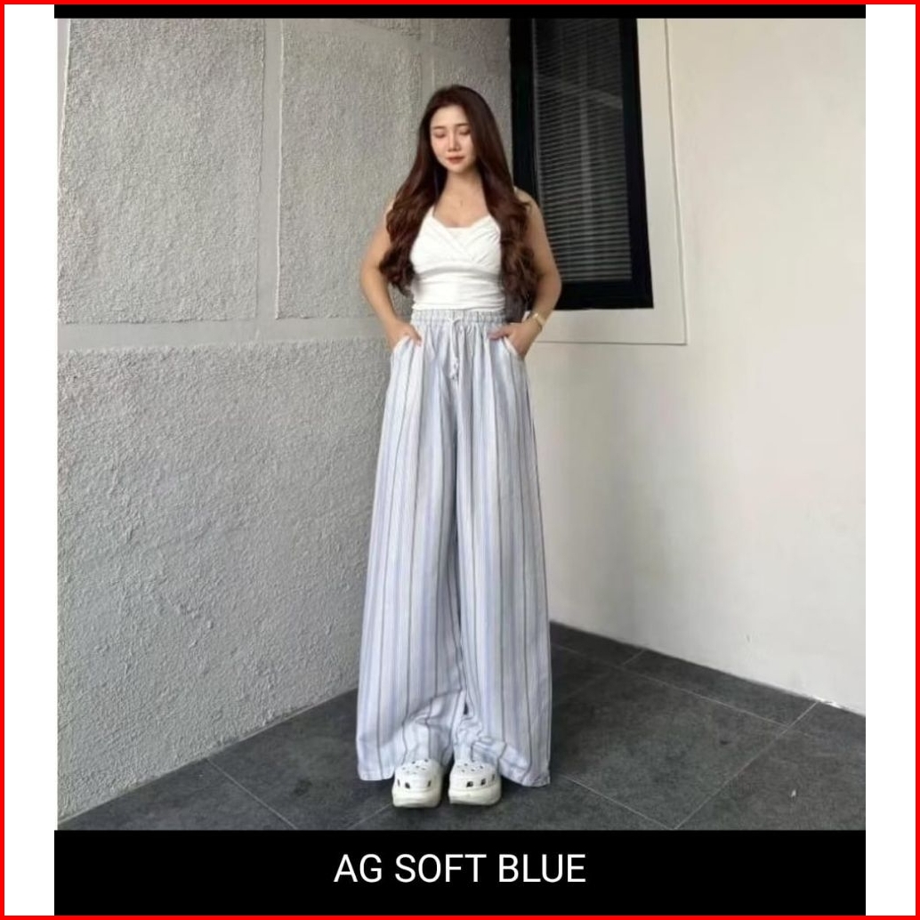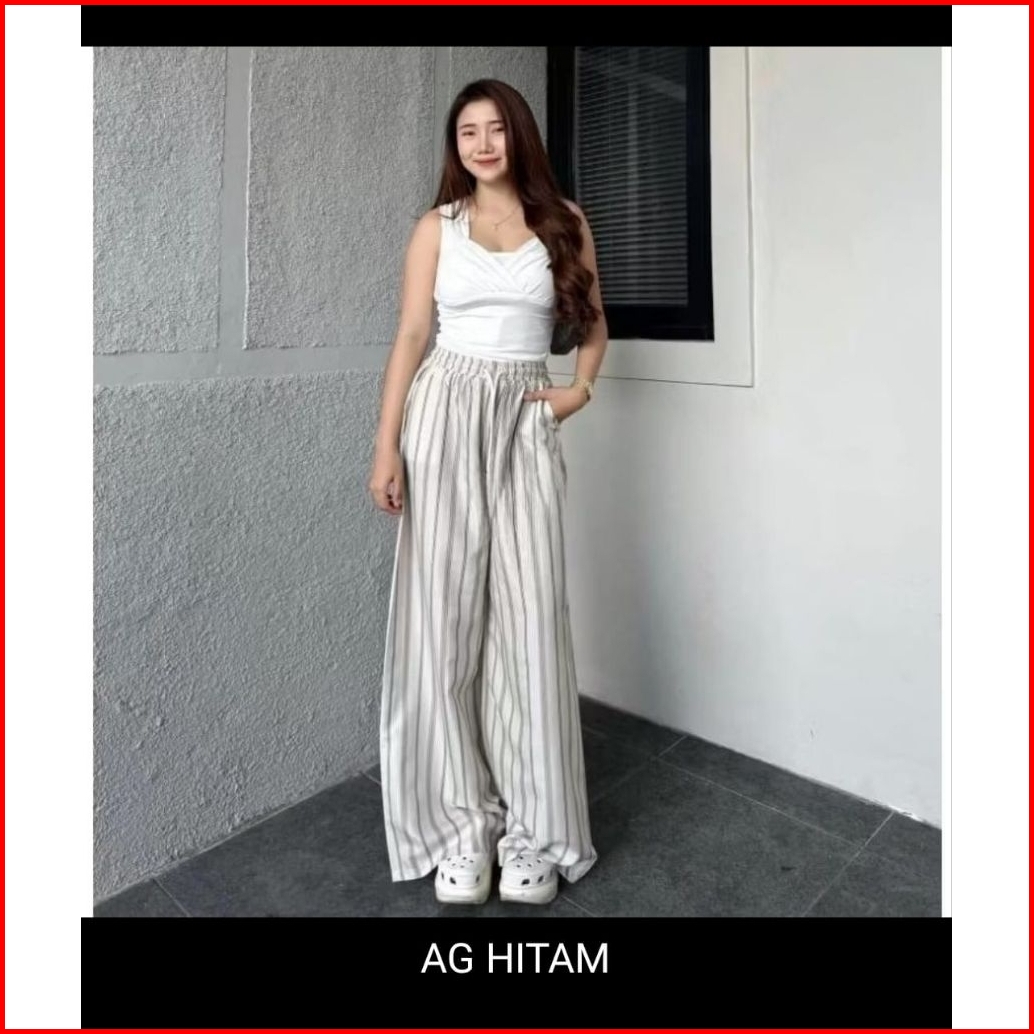 Everyday Pants-celana Panjang Wanita Baggie Pants-kulot Pinstripe Celana Formal Casual Wanita Loose