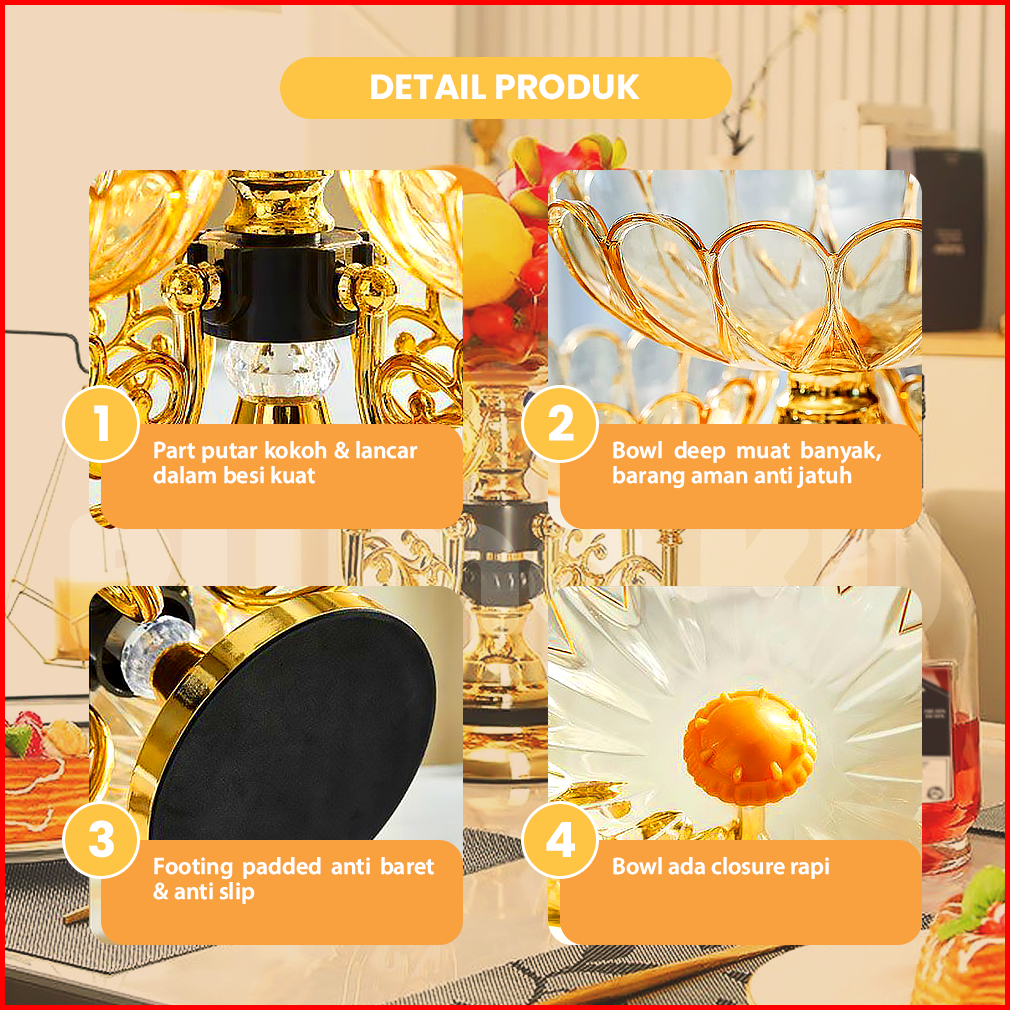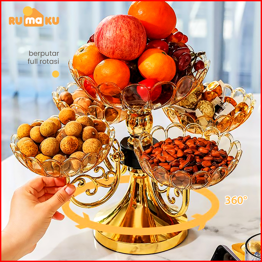 Rumaku Tempat Permen Snack Mewah Aesthetic Tempat Buah Untuk Hiasan Meja Bisa Putar Premium Quality