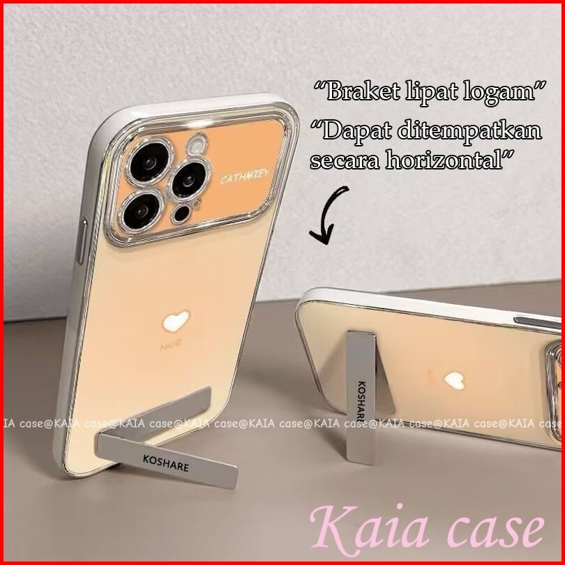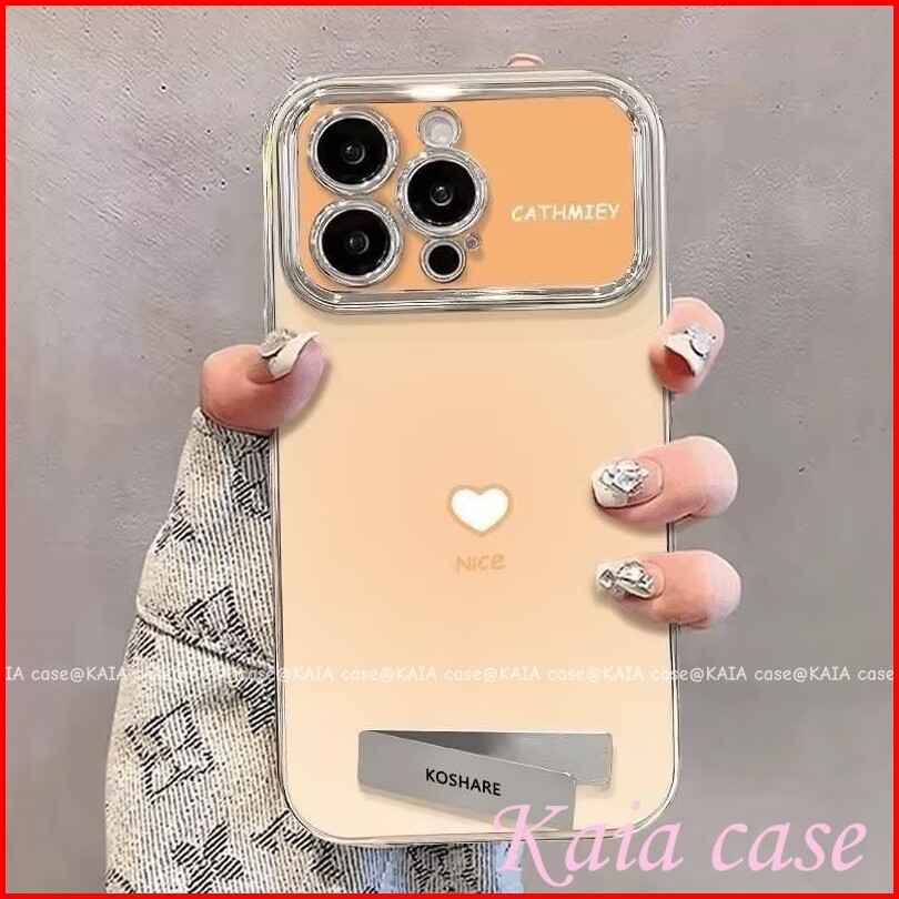 Case Iphone 13 Hati Kecil Berwarna Kuning Dengan Penyangga Dan Rantai Casing Ponsel Cocok Untuk Iphone 7plus Xs Xr 11 11