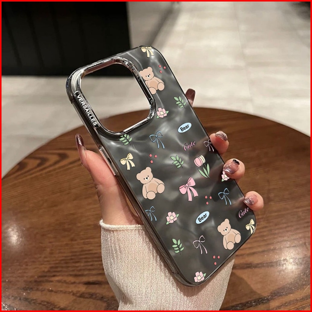 New Premium Case Bear Bow X Tulip Metalic Texture Wrinkle Case - Hardcase Casing Hp Compatible For Iphone 7 8 7 8 X Xs X