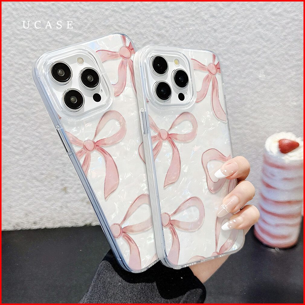 Ucase Case Iphone 11 15 13 14 Plus 12 Pro Max X Xr Xs Max 11pro 11pro Max 7 8 Plus Se Girls Bow Shiny Laser Mother-of-pe