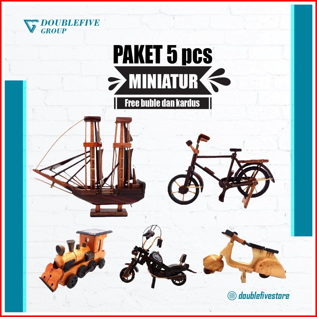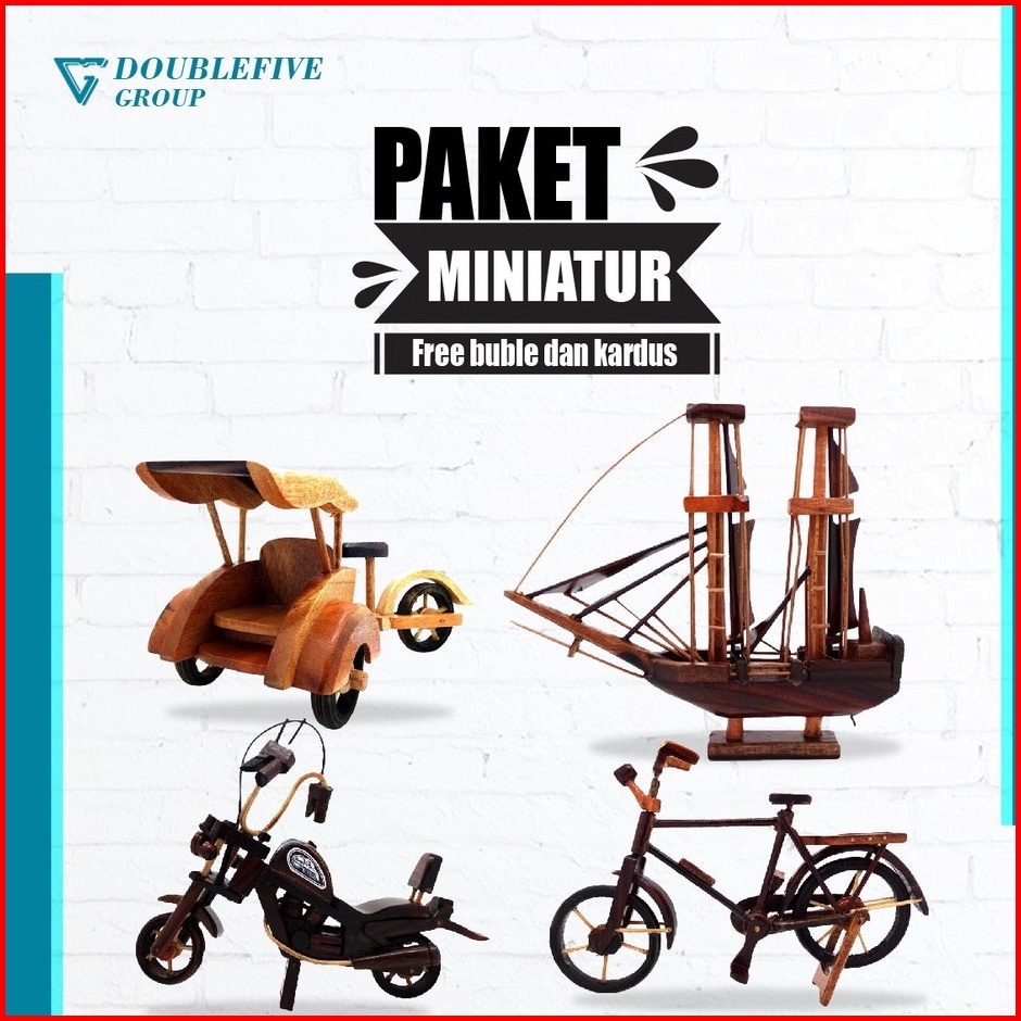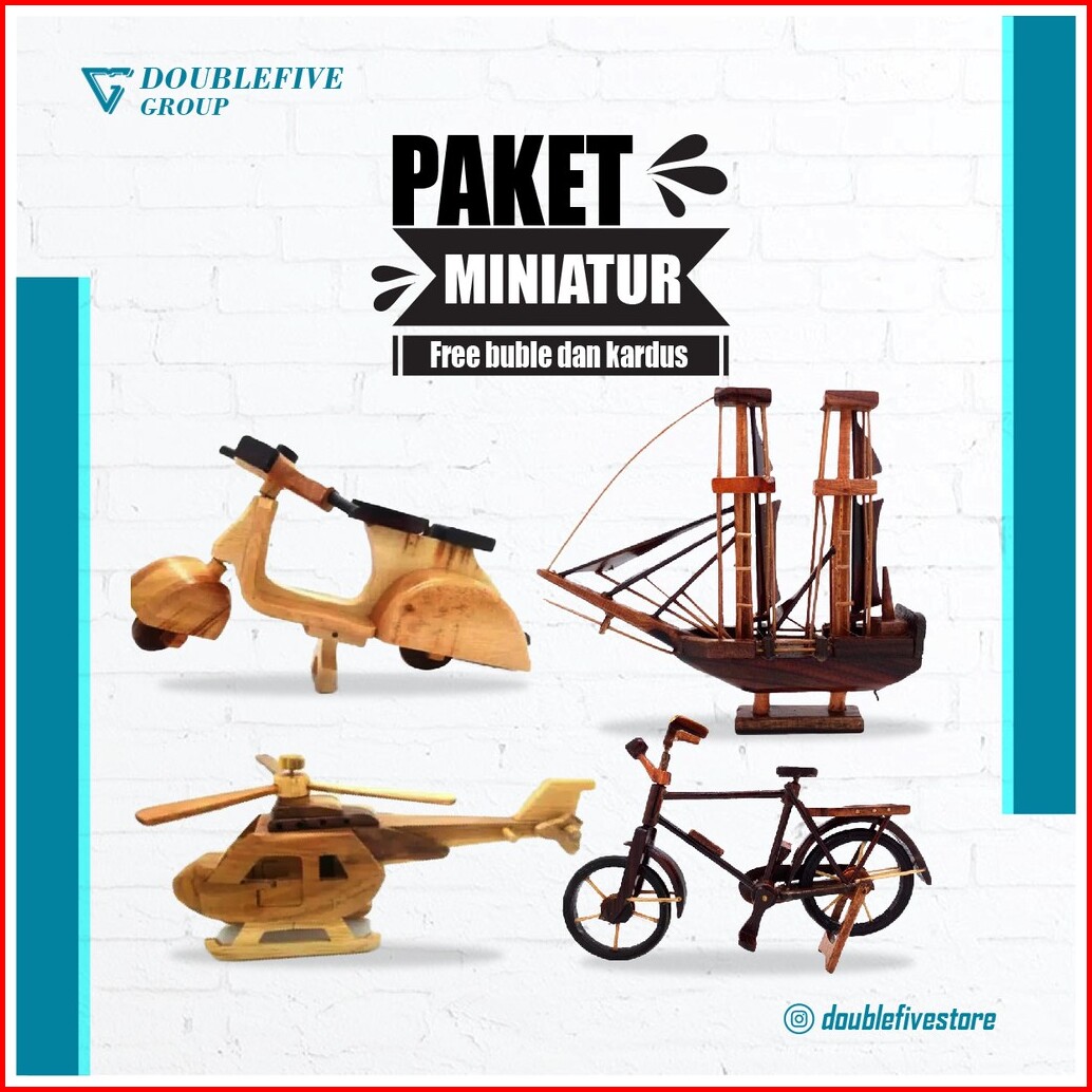 Miniature Paket C Isi 4pcs - Miniatur Dari Kayu Becak Sepeda Harley Kapal Pinisi