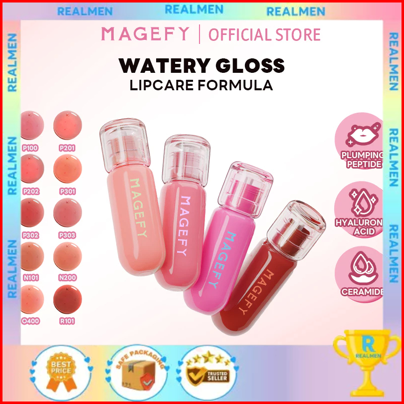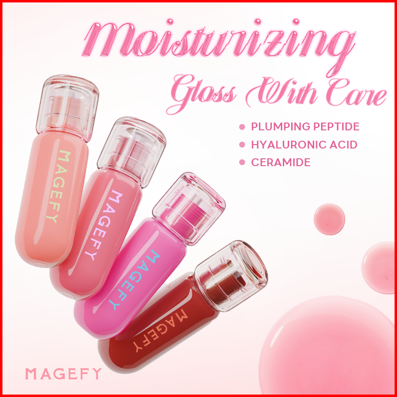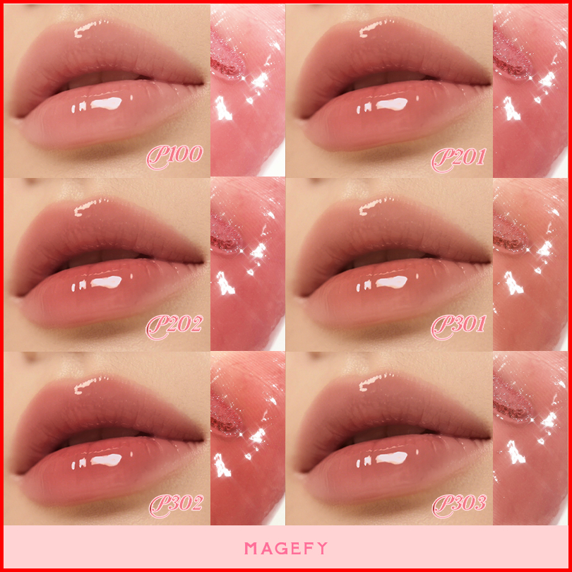 Magefy Lip Gloss Mf-l03 Melembapkan Mengurangi Kerutan Tidak Lengket Kilau 3d Seperti Air