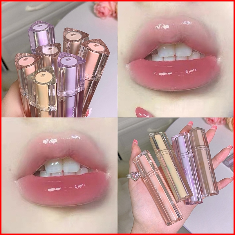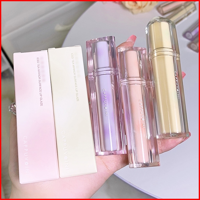 Cappuvini Lip Gloss Iced Tea Jelly Tint Lipstik Glossy Water Mirror Lip Glaze Iced Tea Mirror