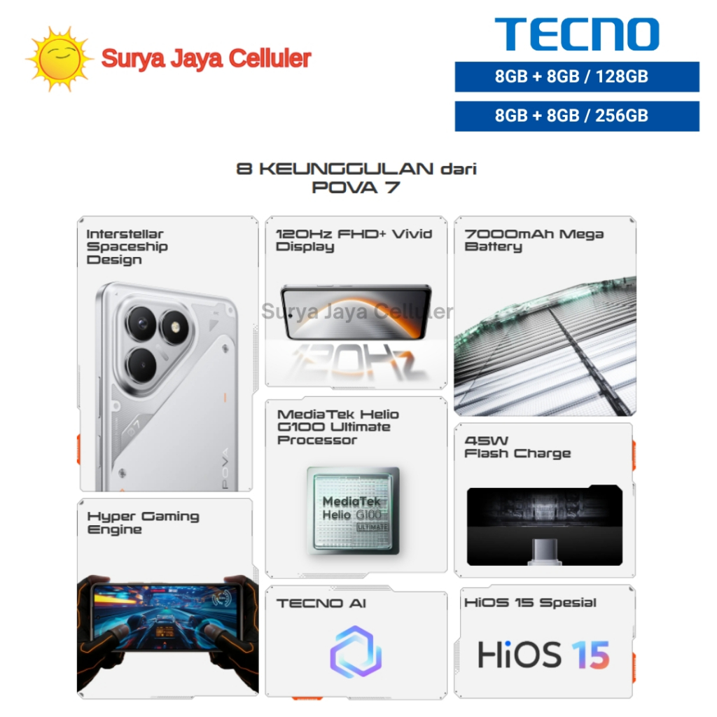 POVA7 5G 8/256-BLACK , POVA7 5G 8/256-SLVER, POVA 7 5G 8/256-CYAN , POVA7 5G 8/128-BLACK, POVA7 5G 8/128-SLVER , POVA7 5G 8/128-CYAN, POVA 7 8/256-BLACK , POVA 7 8/256-GREY, POVA 7 8/256-GREEN , POVA 7 8/128-BLACK, POVA 7 8/128-GREY , POVA 7 8/128-GREEN, GARANSI