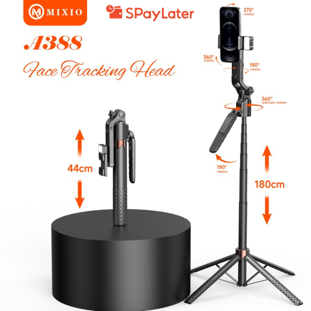 mall inline badgeMIXIO A388 1.8M Tripod Auto Face Tracking Gimbal Handphone 360° Led Quadripod Tongsis Bluetooth Remote