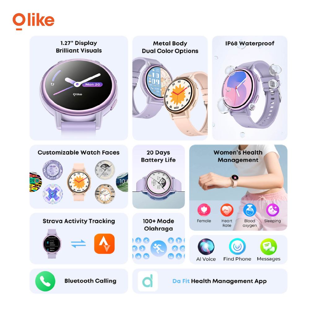 [NEW LAUNCH] OLIKE Smartwatch Jam Tangan Wanita Interstellar FW5 Layar 1.27" Display 20Day Battery Bluetooth Call IP68