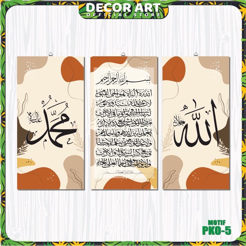 DecorArt 45x30 Cm - Paket Kaligrafi Aesthetic Lafadz Allah Muhammad & Ayat Kursi Siap Pasang 3 Pcs @15x30 Cm (Kd. PK PKO
