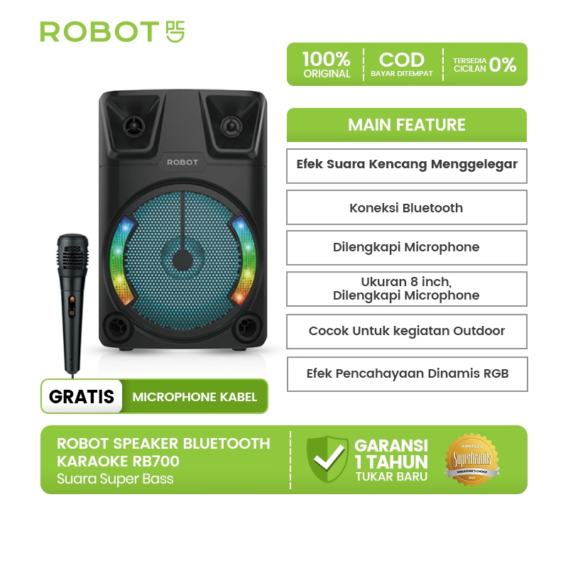 [ GRATIS MIC ] ROBOT Speaker Karaoke Microphone 10W Tahan Lama Suara Super Bass Jernih Dengan Cahaya Lampu RGB Karaoke