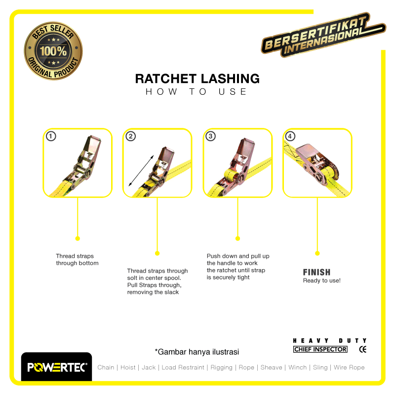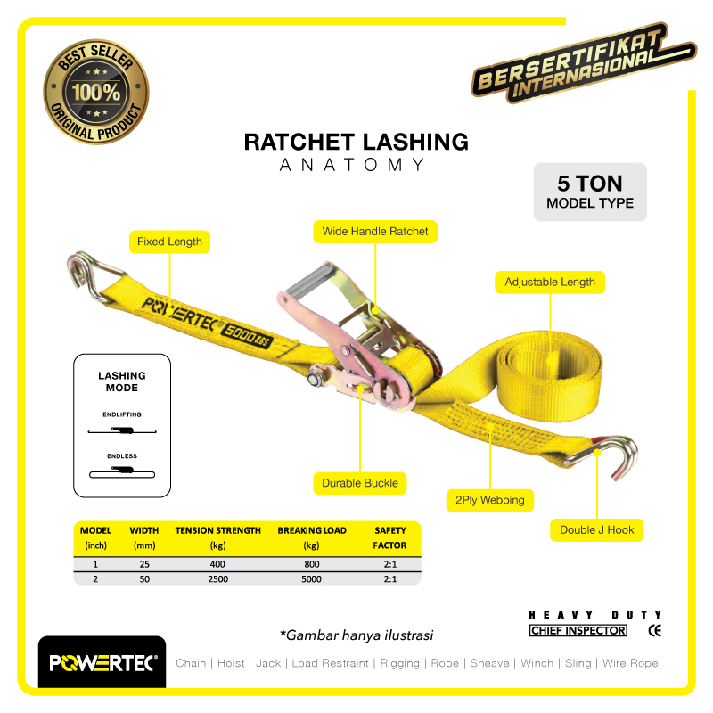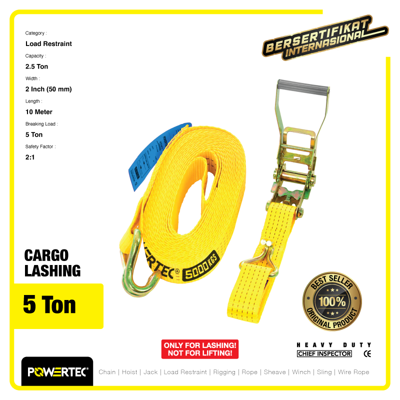 POWERTEC Ratchet Tie Down Cargo Lashing Belt 2" x 10M Pengikat Barang