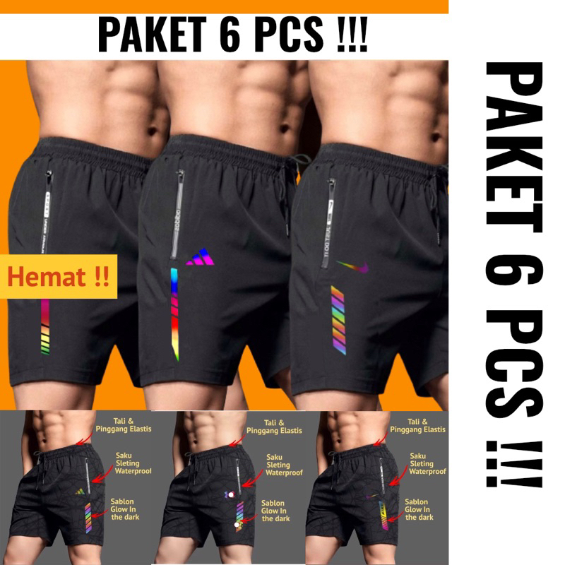 PAKET6PCS Celana Pendek Olahraga Unisex Bahan Strech Sleting Waterproof