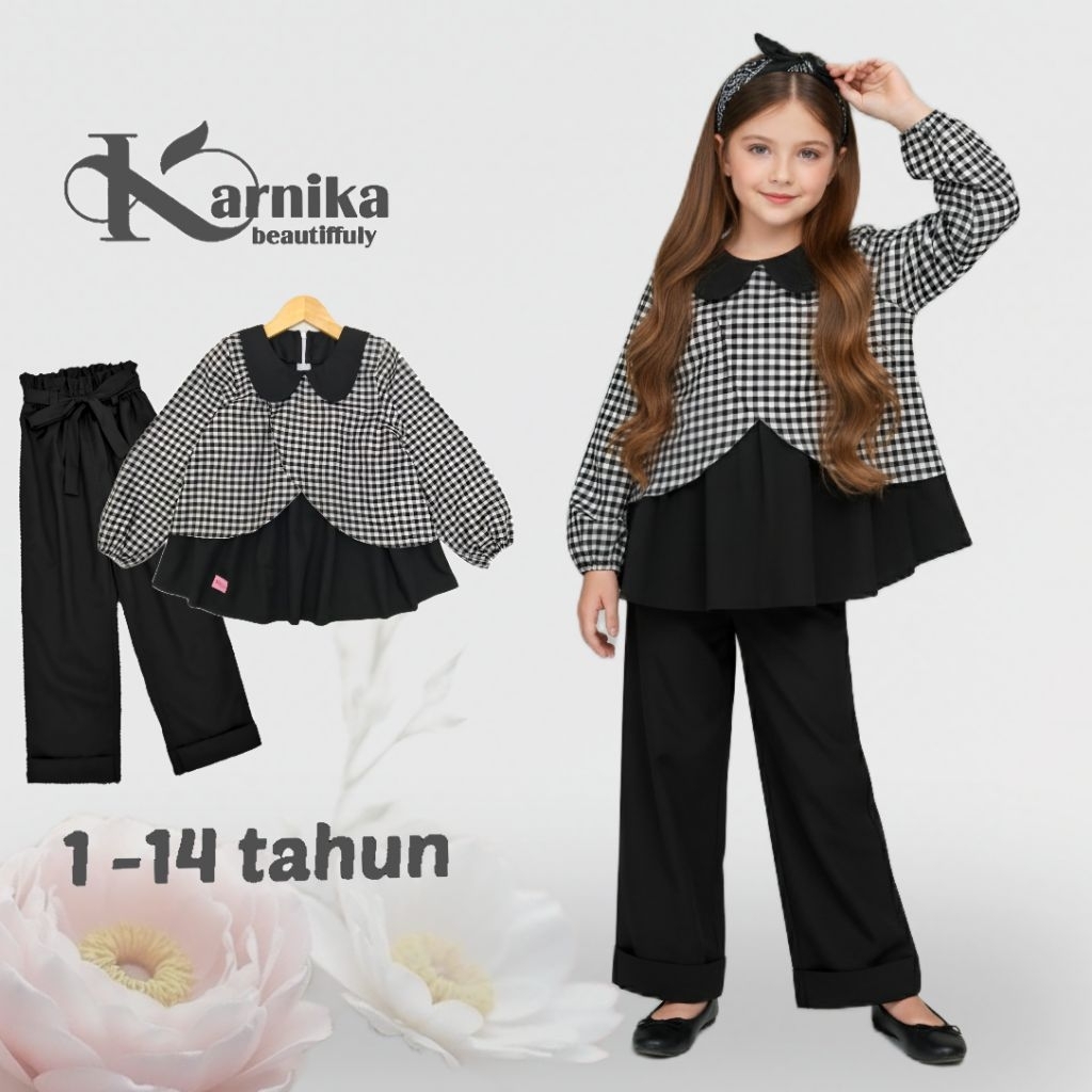 Karnika Baju Anak Perempuan Setelan Blus Korean Oneset Celana Panjang
