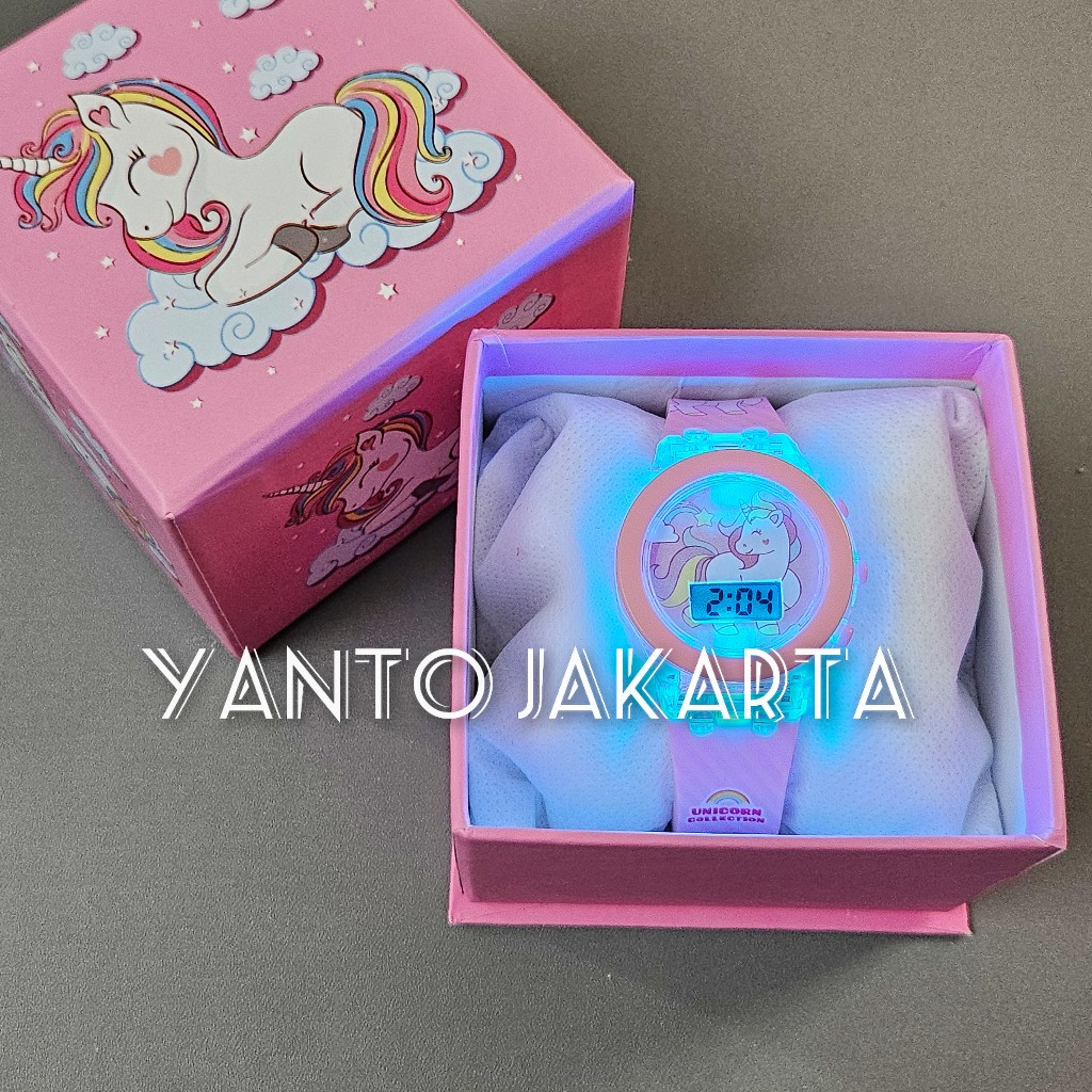 Jam Tangan Anak Perempuan Unicorn Set Kado Led Bercahaya