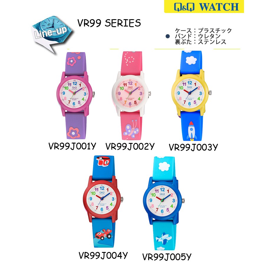 Jam Tangan Anak Q&Q Qnq Qq Vr99 Vr99J Original Tahan Air 10 Bar Motif Lucu Imut