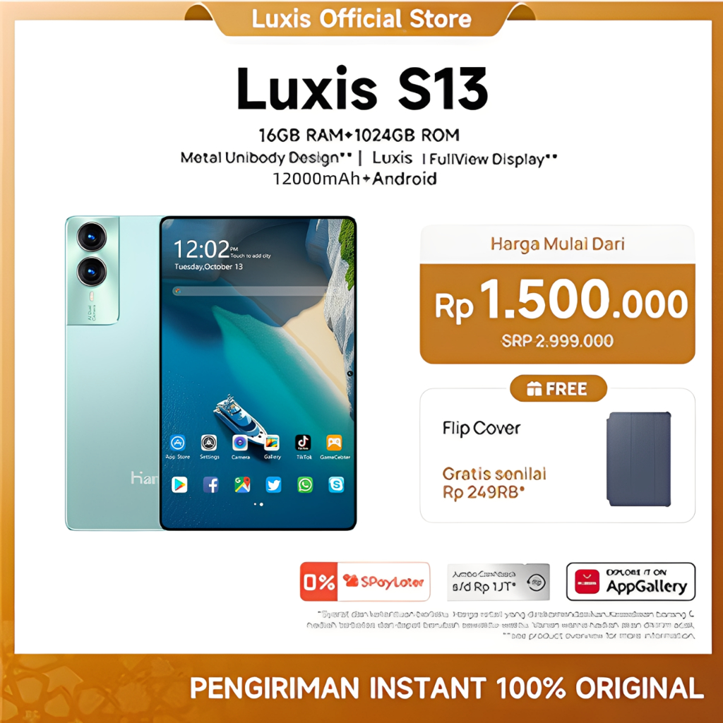 Luxis Tablet S13 (16GB+1024GB)12.8inch"lPS Screen tablet android15 12000mAh Dual Sim Card advan tablet murah100ribuan anak tablet android murah Luxis Oficial Store