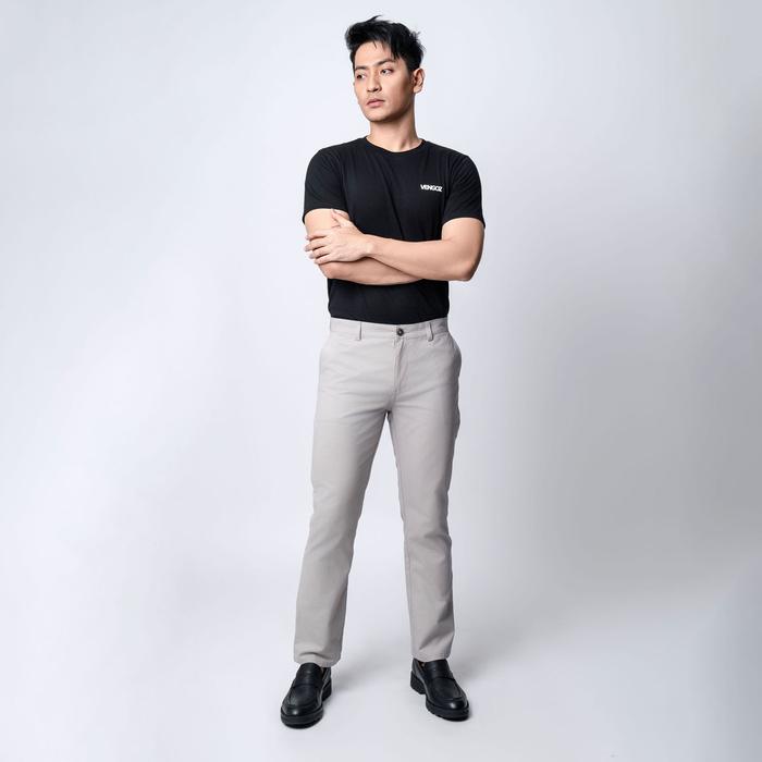 VENGOZ CELANA PRIA - MENS CHINO PANTS REGULAR STRAIGHT FIT COTTON TWILL LIGHT GREY - LIGHT GREY, 29