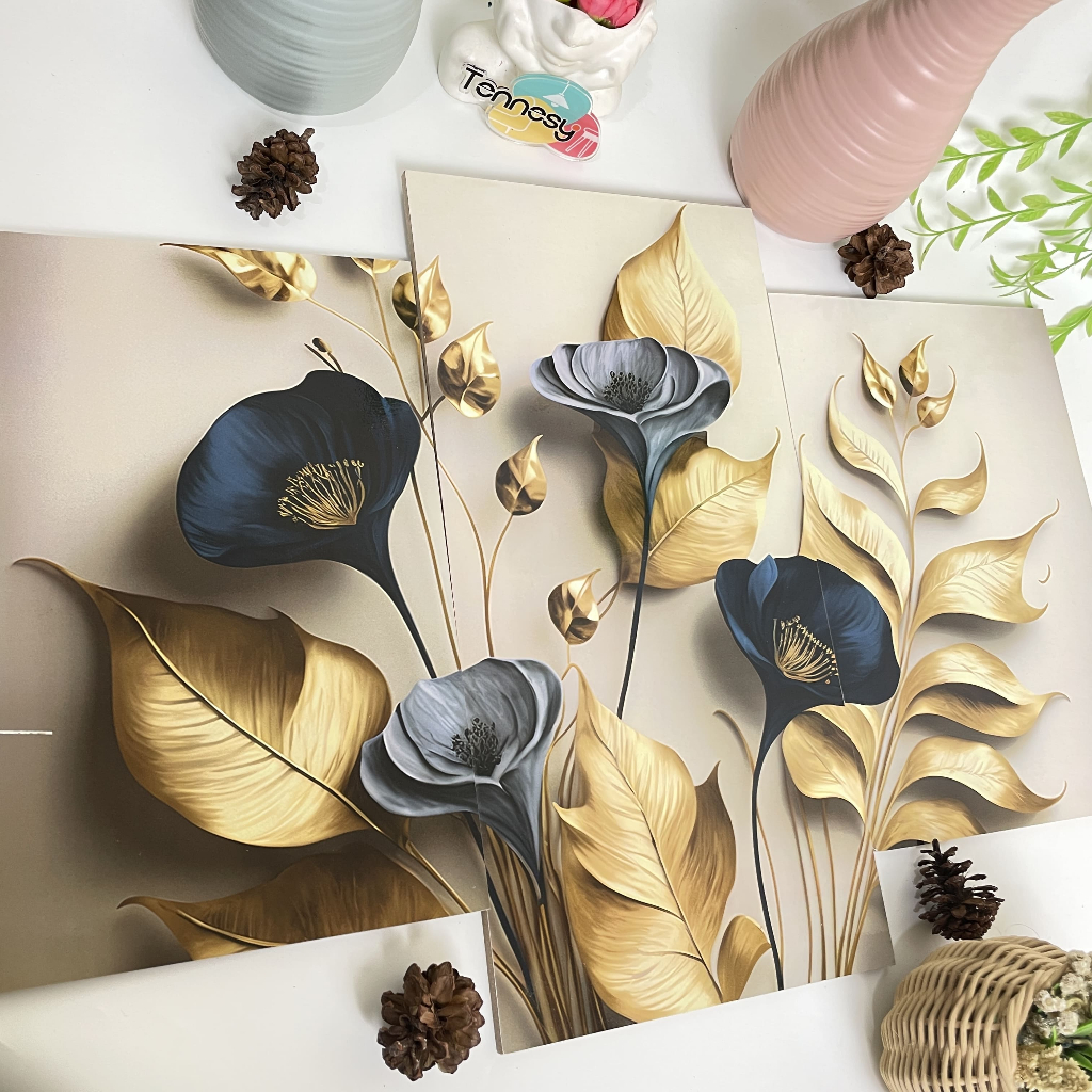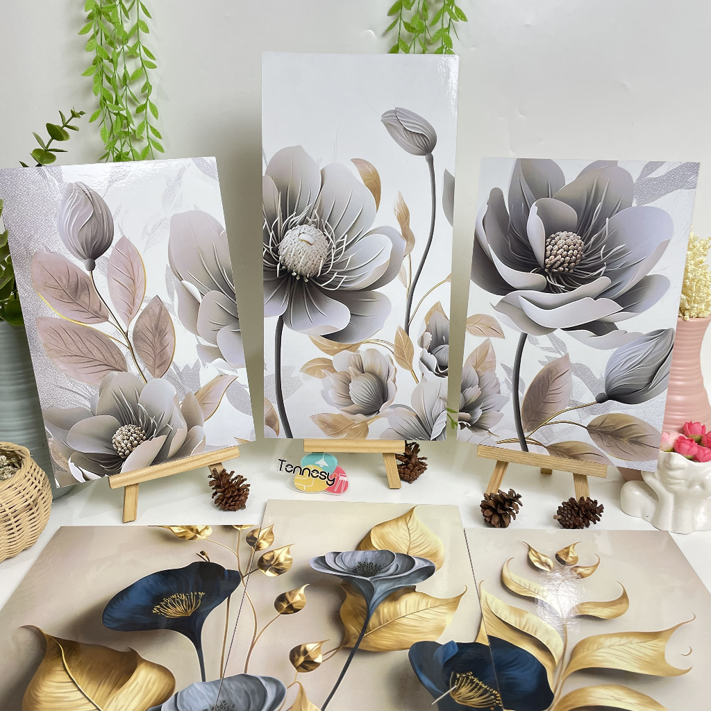TENNESY Hiasan Dinding Set Bunga 3D 3 Panel Besar Dekorasi Kamar Tidur Pajangan Dekorasi Kamar Rumah