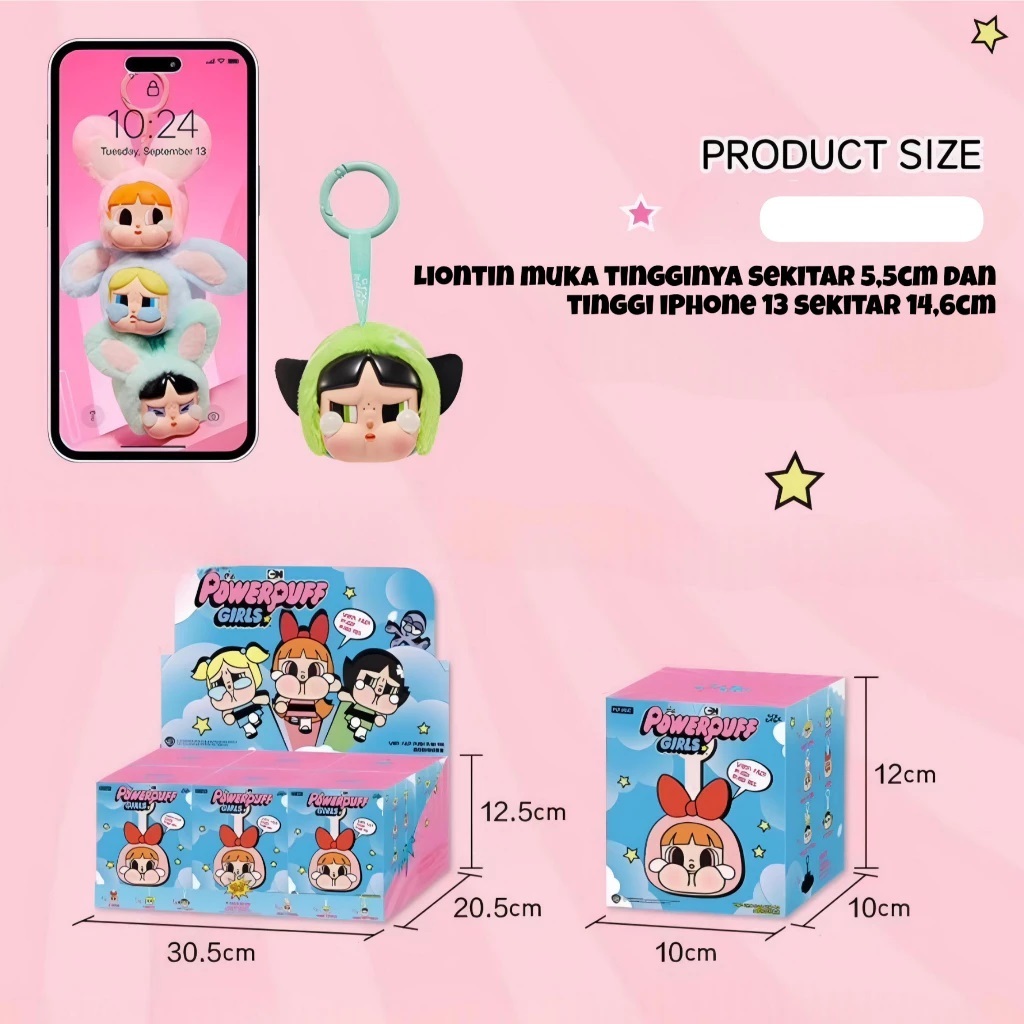 CRYBABY x POWERPUFF GIRLS Action Figure Toys Gantungan Kunci Cry Baby x PowerPuff Girl -YS