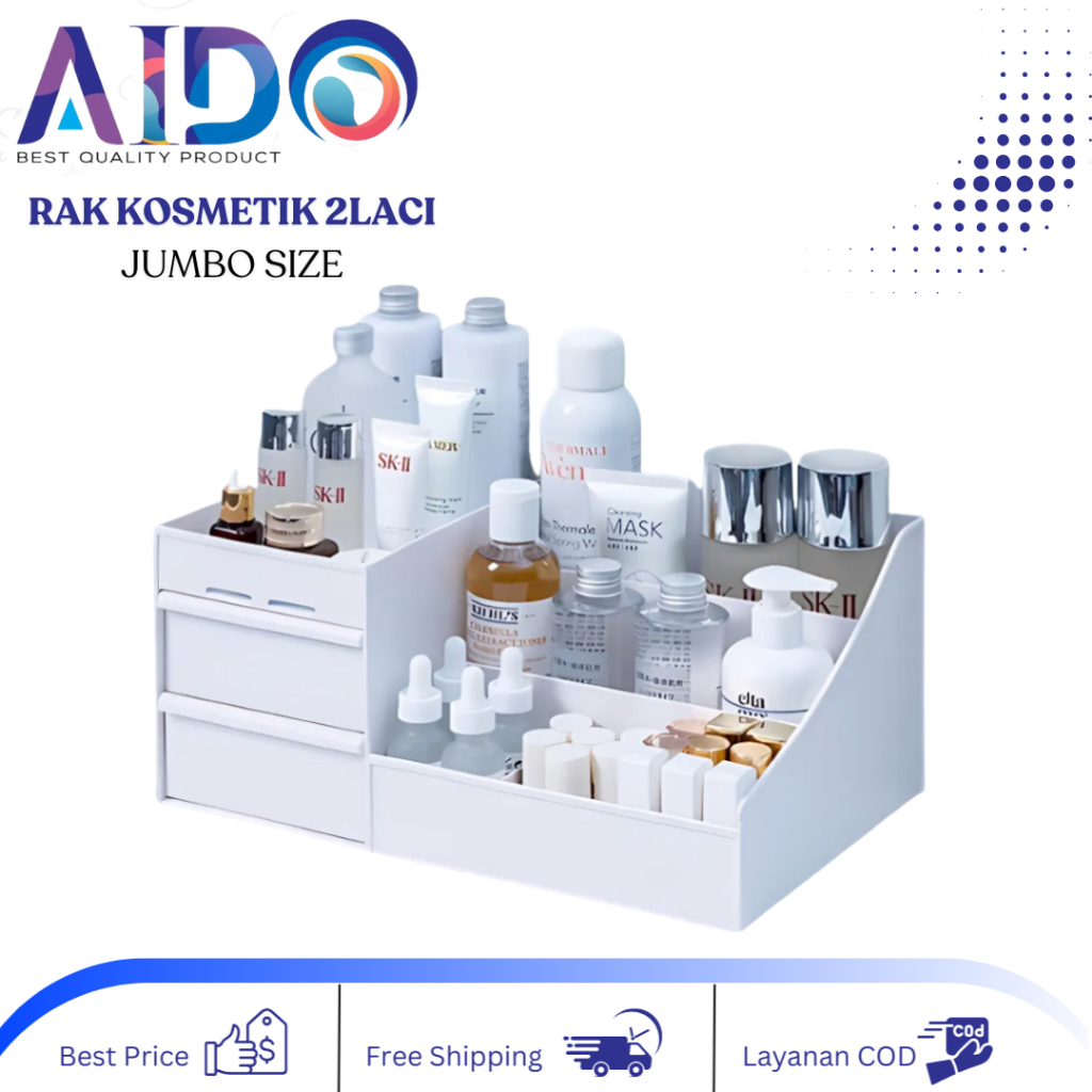 Rak Kosmetik Aesthetic 2 Laci Multifungsi Tempat Penyimpanan Aksesoris Perhiasan Jumbo
