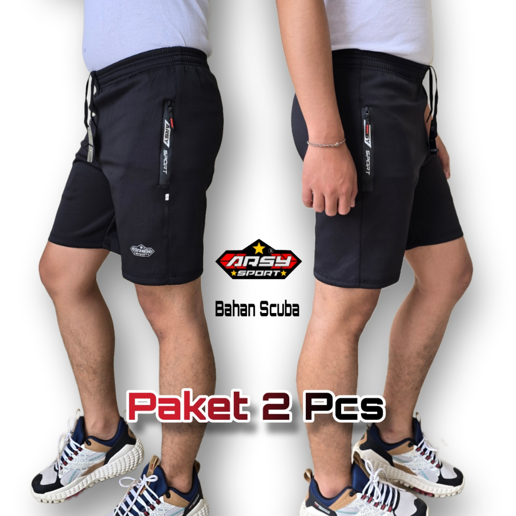 Arsy Sport Paket 2 Pcs Celana Pendek Olahraga Gym Running Fitnes Volly Bahan Scuba Elastis Slimfit SC02