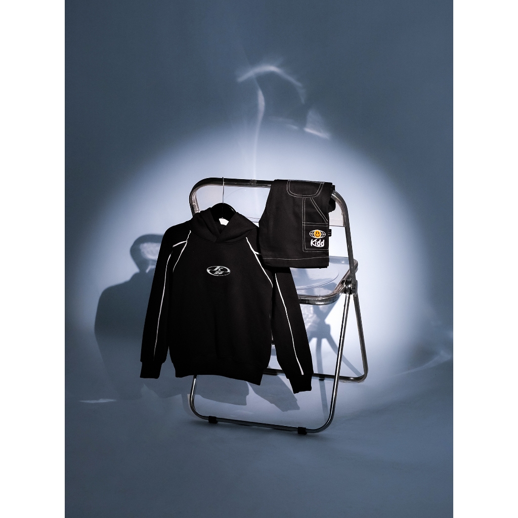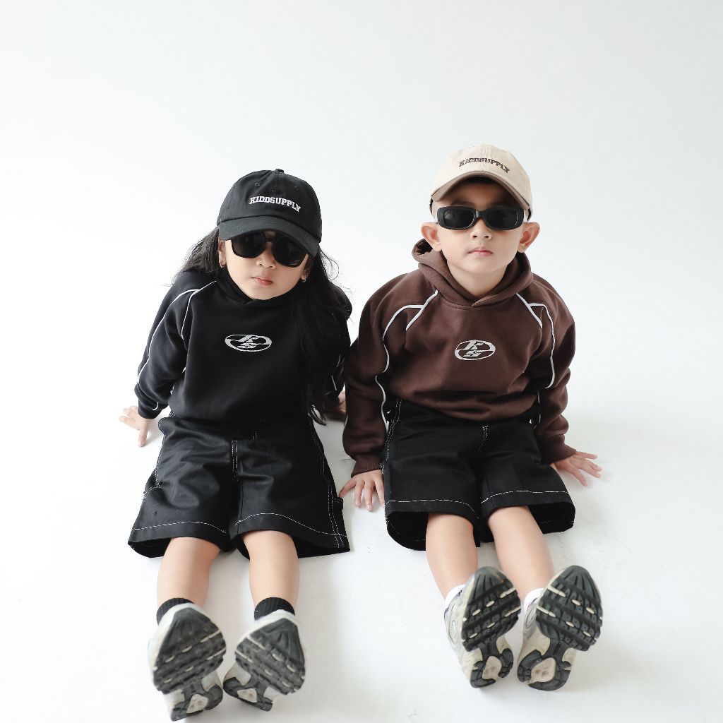 Kiddsupply Hoodie Boxy List Anak Neocore Embroidery Black & Dark Brown | Hoodie Boxyfit Anak Unisex | Kd-Hd-Bx-List-Kse