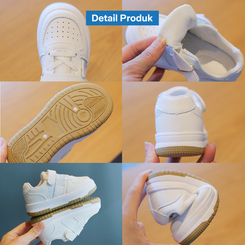 Lapago Free Box Sepatu Sneakers Casual Anak Laki Laki Perempuan Putih Usia 1 - 12 Tahun Type Mfv