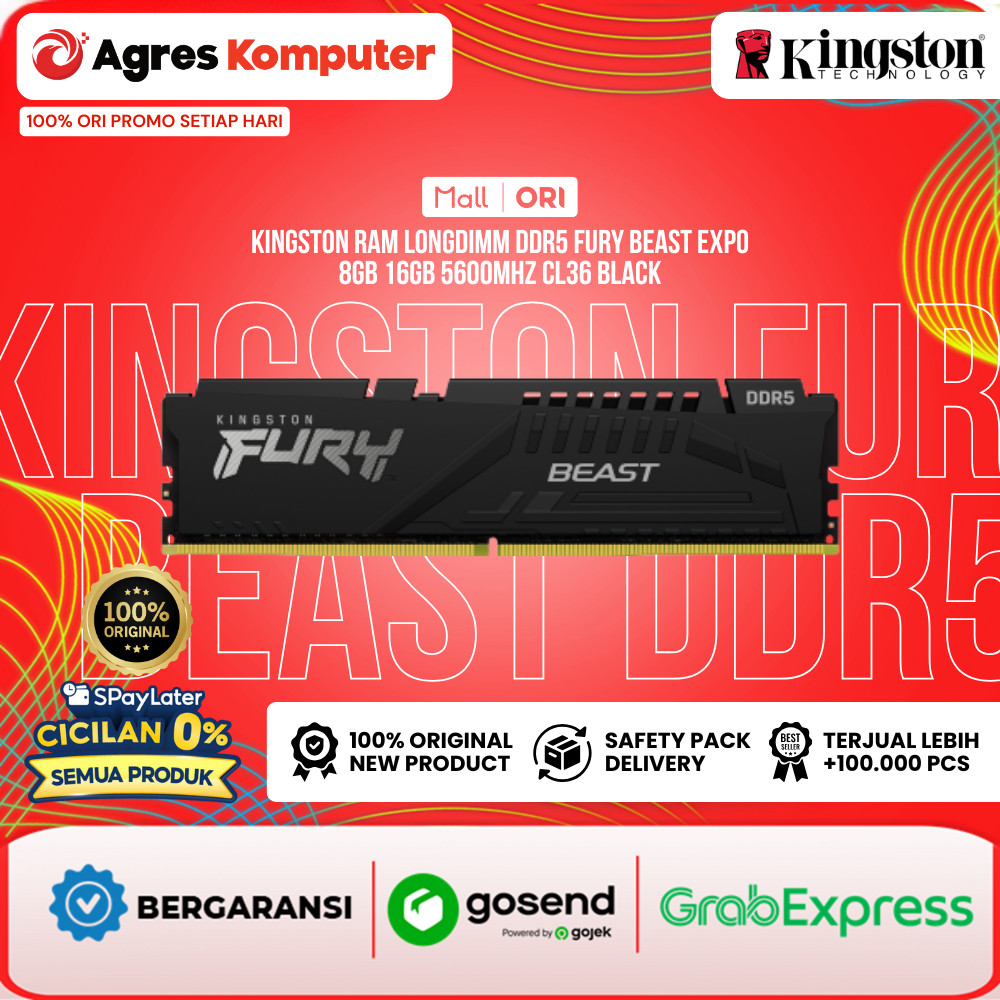 KINGSTON RAM LONGDIMM DDR5 FURY BEAST EXPO 8GB (8GBX1) 16GB (16GBX1) 5600MHZ CL36 BLACK