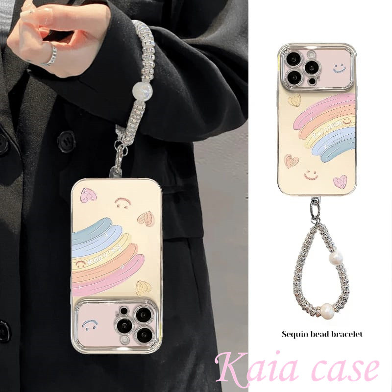 case iphone 11 shell+bracket+chain iphone 11 rainbow love smiling face with bracket and hand line casing