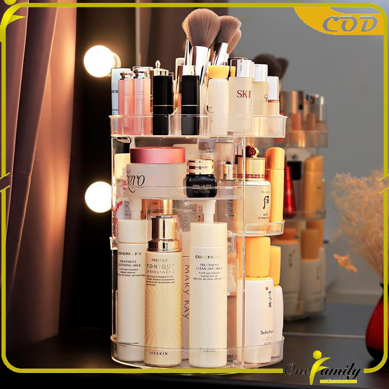 ONE-K5/K6 Rak Kosmetik Acrylic Putar 360 Derajat Diamond / Polos Rak Make Up Organizer Tempat Makeup