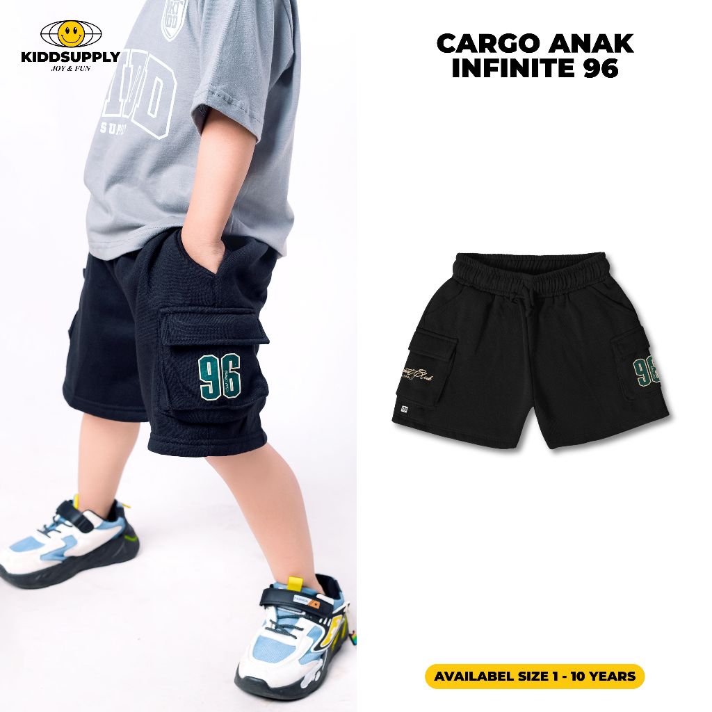 Kiddsupply Shortpants Cargo Anak Infinite 96 Black | Celana Cargo Anak Pendek | Unisex | Kdspc003