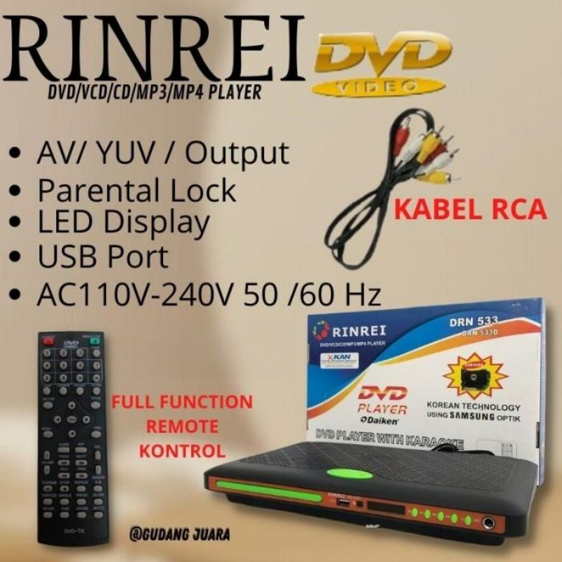 Rinrei DVD Player DRN-533D/DRN-533K USB CD Optic Samsung Digital Karaoke